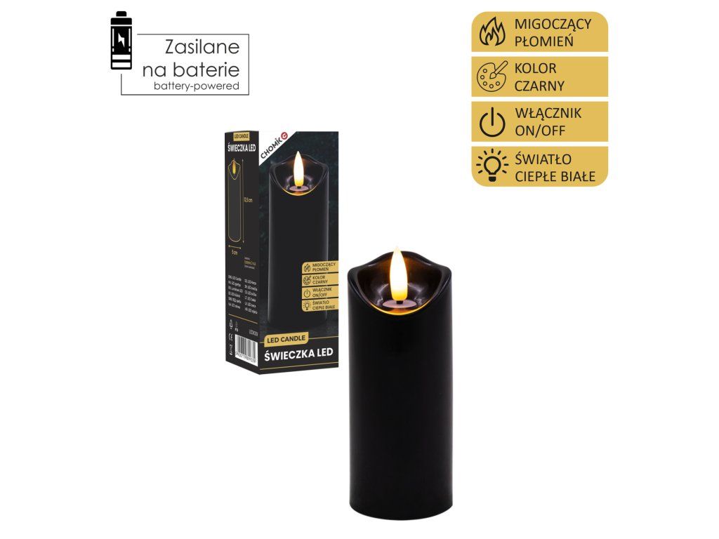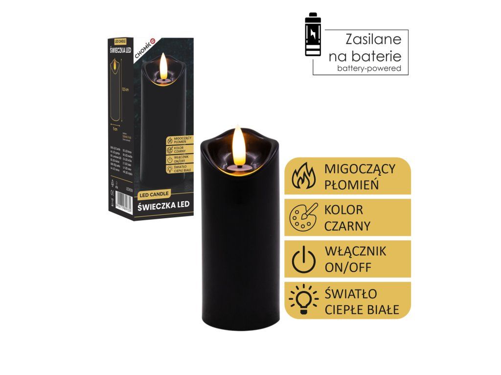 Candle LED Neagră 5 x 12,5 cm *9339