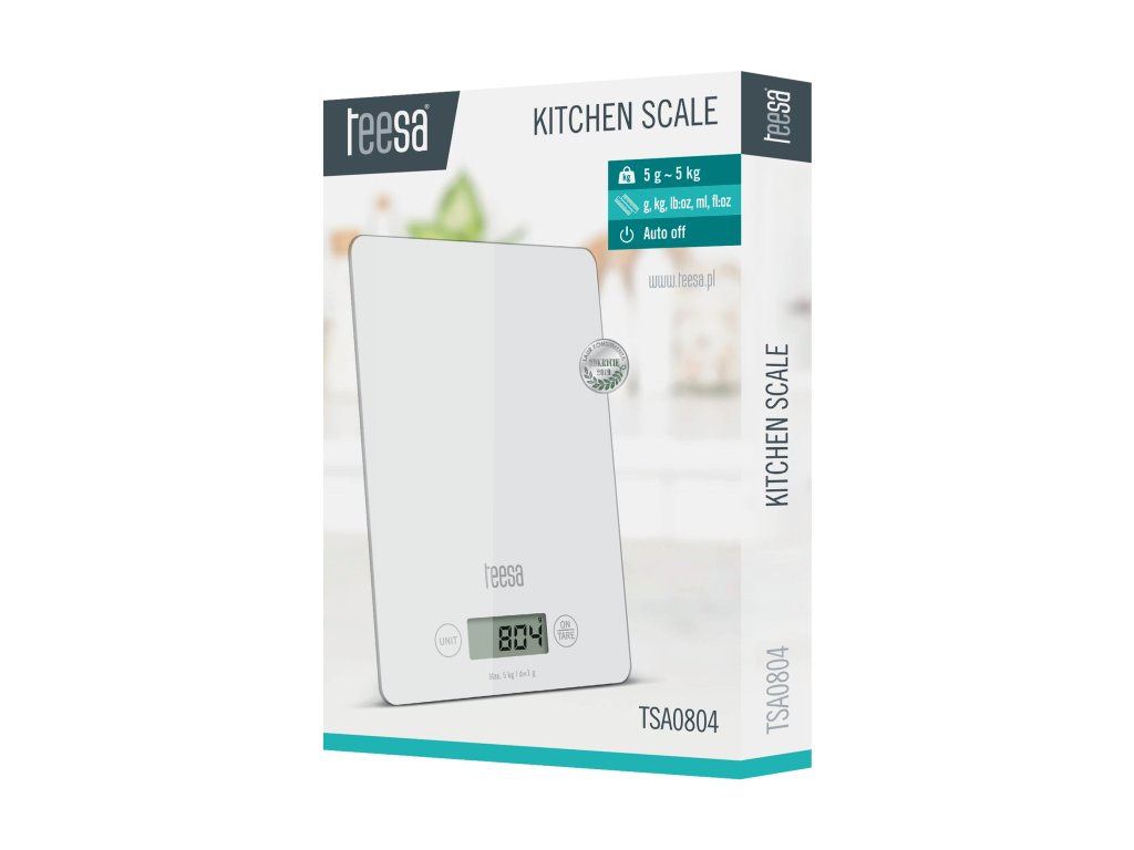 Un mare avantaj al modelului TSA0804 este funcția de tarare, care permite cântărirea greutății produsului în sine. Cântarul este echipat cu un afișaj LCD citibil, care afișează măsurătorile într-una dintre cele patru unități: grame, mililitri, livre sau uncii.Design elegant