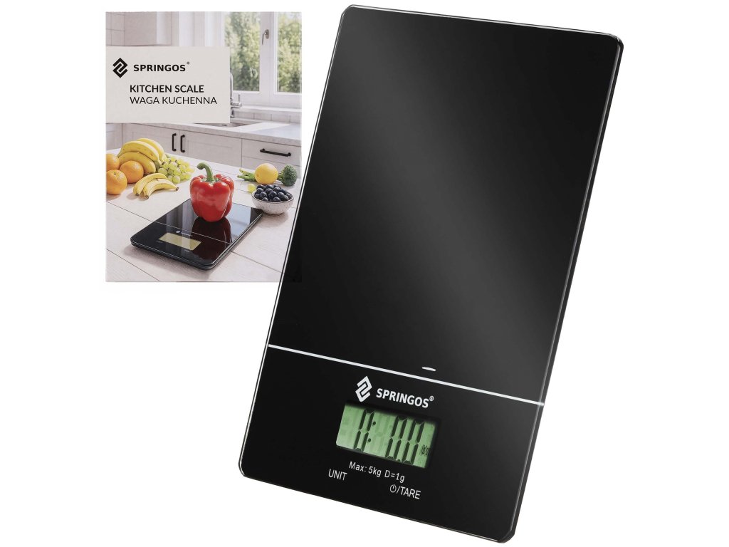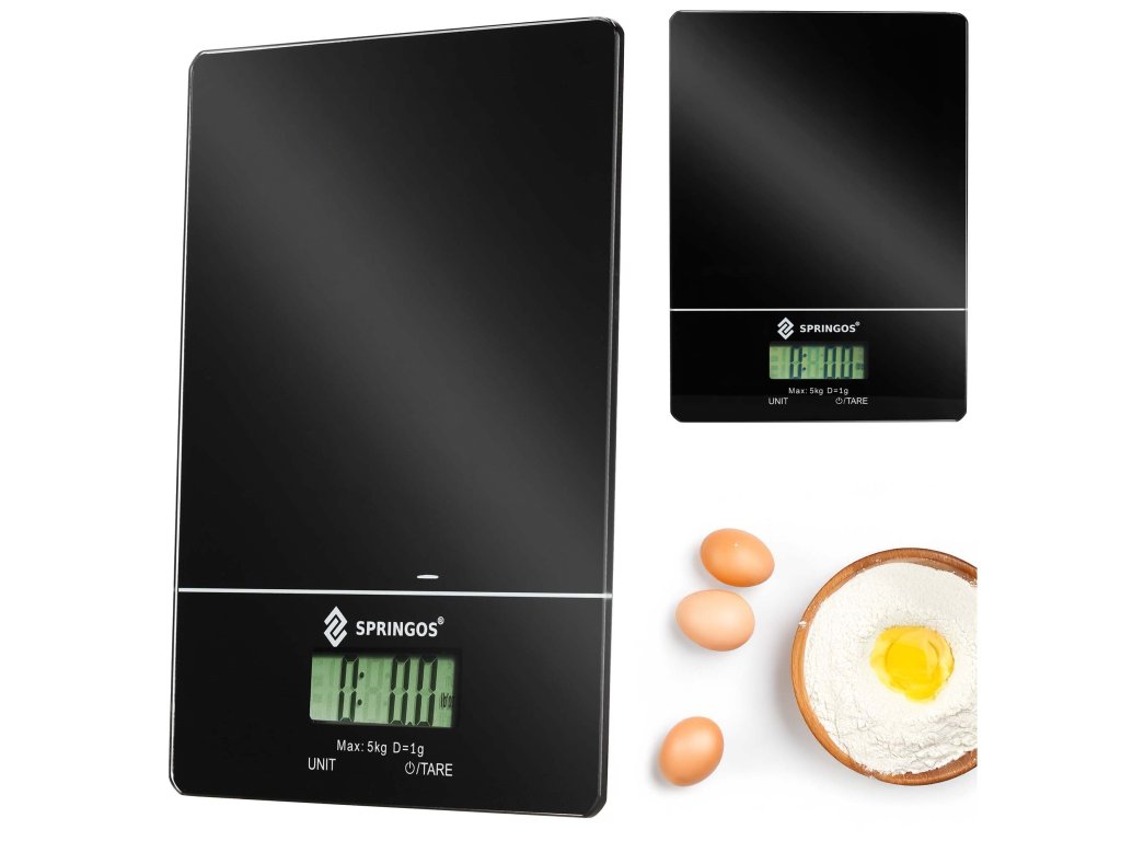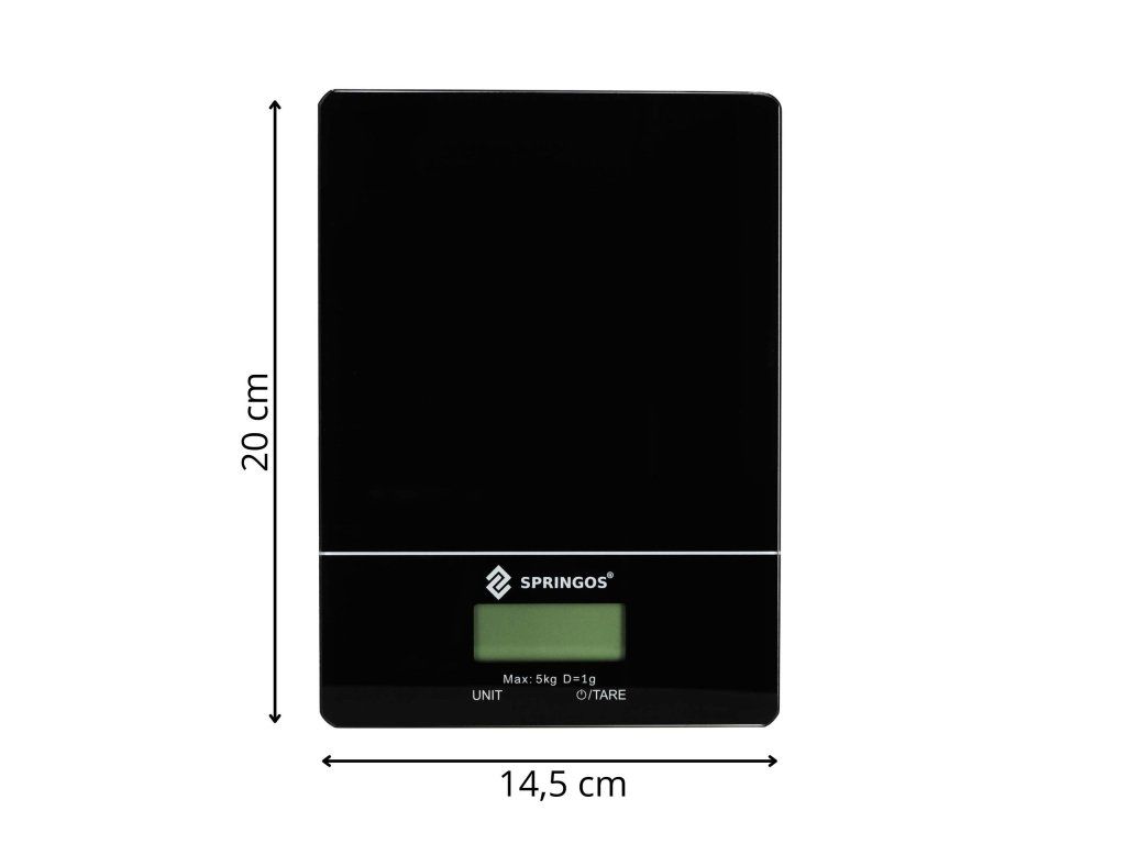 - Produsul are logo-ul Springos® Cântarul vine cu baterii (CR2032)