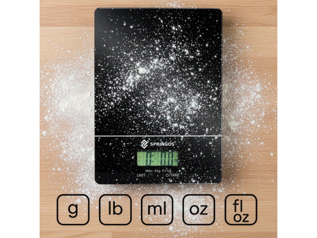 - 5 unități de măsură (g, ml, lb, oz, fl oz)