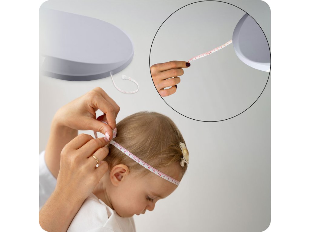 Datorită benzii măsurătoare încorporate puteți monitoriza cu o precizie excepțională circumferința capului copilului și vă asigurați că dezvoltarea are loc perfect! Este un instrument de neînlocuit care permite înregistrarea la timp a oricăror abateri și îngrijirea sănătății copilului dumneavoastră la cel mai înalt nivel!