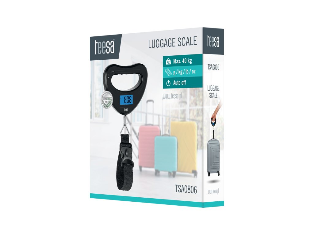 La aeroport, în timpul formalităților de check-in, priviți mereu cu nervozitate cântarul temându-vă că veți depăși limita admisă de bagaje Echipati-vă cu cântarul pentru valize Teesa și uitați de cântărirea bagajelor cu cântarul din baie. Capacitatea maximă a cântarului este de 40 kg, astfel încât puteți cântări cu ușurință chiar și bagajul familiei. Aparatul are un mâner ergonomic confortabil și un afișaj LCD ușor de citit, pe care puteți vedea cu ușurință rezultatul măsurătorii. Cântarul pentru valize Teesa este ușor și economisitor de spațiu, așa că îl puteți lua cu dvs. în călătorii. Compania dumneavoastră aeriană impune o limită de greutate în kilograme Prin urmare, va fi foarte convenabil să