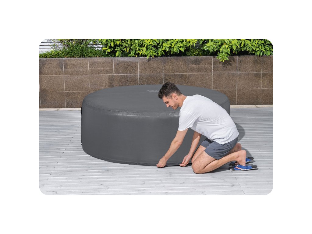 Capacul este prevăzut cu un fermoar pentru conectarea pompei. Avantajul său este montajul simplu și intuitiv. Este fabricat din material solid. Este unul dintre elementele importante care contribuie la economisirea banilor dumneavoastră! Dacă visați să aveți SPA-ul rapid pregătit pentru utilizare, nu ezitați să cumpărați.