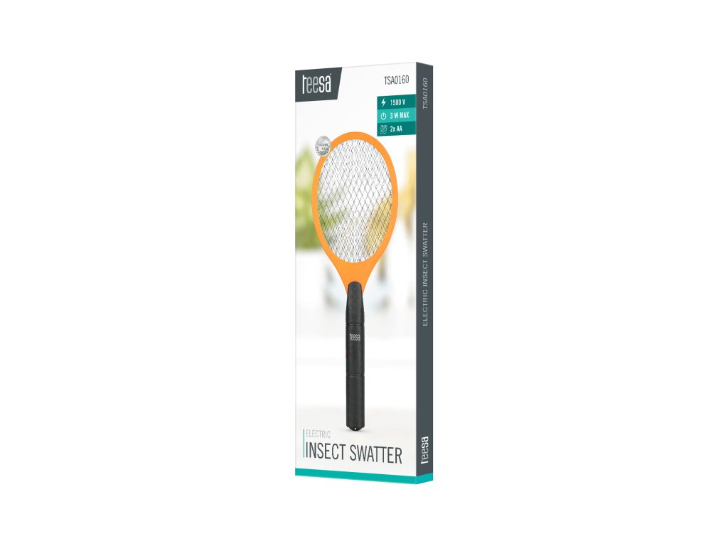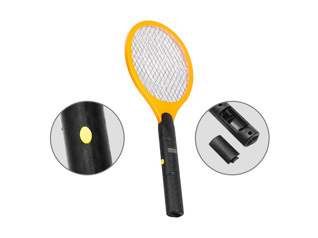 Paleta electrică pentru muște, alimentată de baterii, este echipată cu o plasă robustă, cu trei straturi. Utilizarea dispozitivului este foarte simplă - apăsați pur și simplu butonul de pe mâner pentru a crea tensiune în plasă. Racheta de insecte Teesa este disponibilă în trei culori: portocaliu, roșu și albastru.