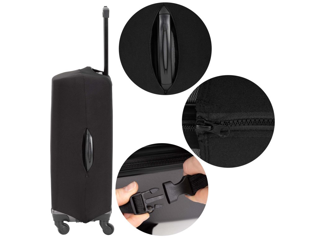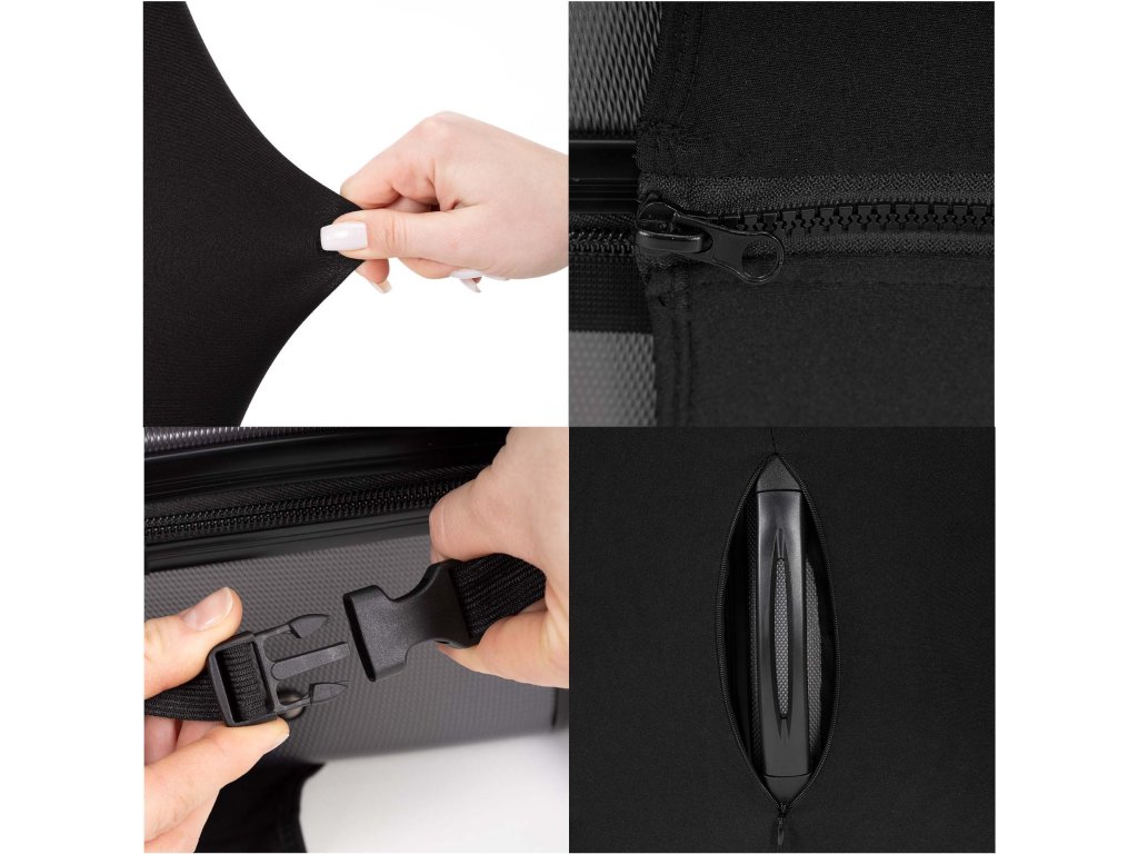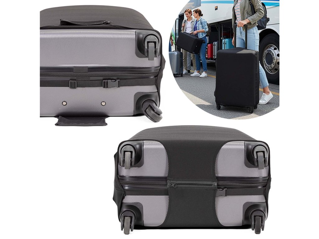 - Husa este echipată cu o cataramă elastică care poate fi atașată sub valiză.