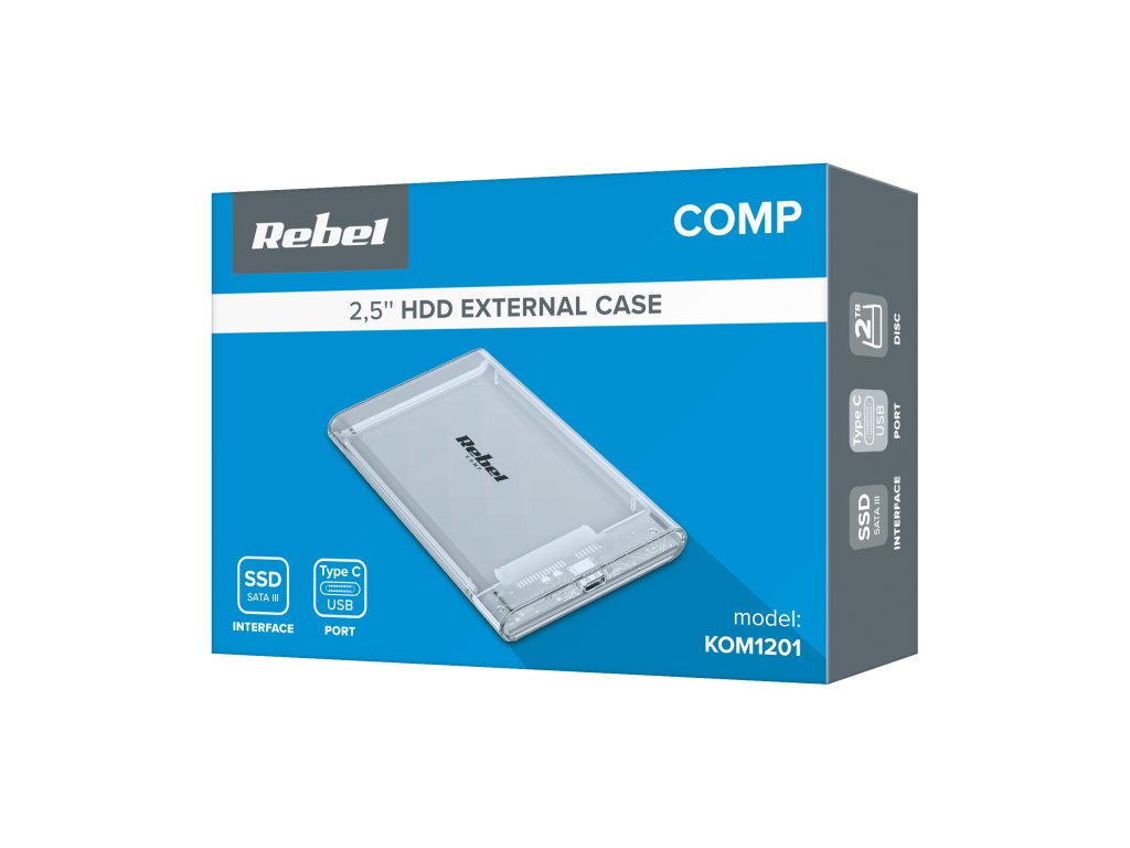 Carcasă pentru disc 2,5" SATA USB-C 3.1 Rebel oferă un transfer rapid de până la 6 Gbps, permițând lucrul fluid cu fișierele. Suportul pentru discuri cu capacitate de până la 2 TB asigură că va înmagazina fără probleme documente importante, multimedia sau backup-uri. Construcția transparentă și alimentarea prin USB adaugă un aspect modern și funcționalitate, eliminând nevoia de cabluri suplimentare.