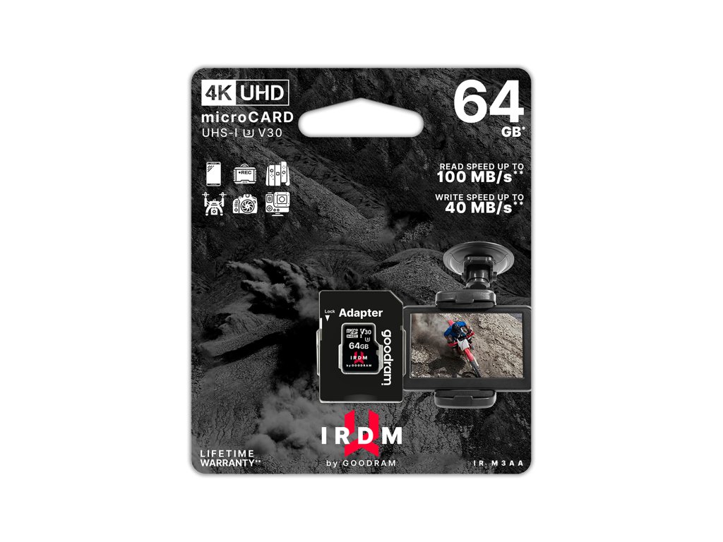 Caracteristicile cardului de memorie IRDM includ: rezistență la șocuri, la raze X, la radiații magnetice sau la apă. Datorită componentelor de cea mai bună calitate și selectate cu grijă, acestea vor funcționa perfect și în condiții extreme. Toate cardurile de memorie din seria IRDM by GOODRAM vin cu o garanție pe viață, ceea ce este o dovadă a grijii pe care producătorul polonez o acordă fabricării lor.
