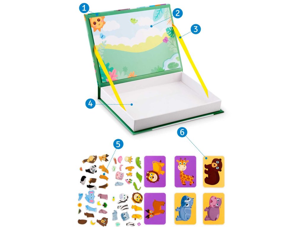 - pachetul conține fundal magnetic pentru lipirea elementelor animale, servește și ca compartiment de depozitare.