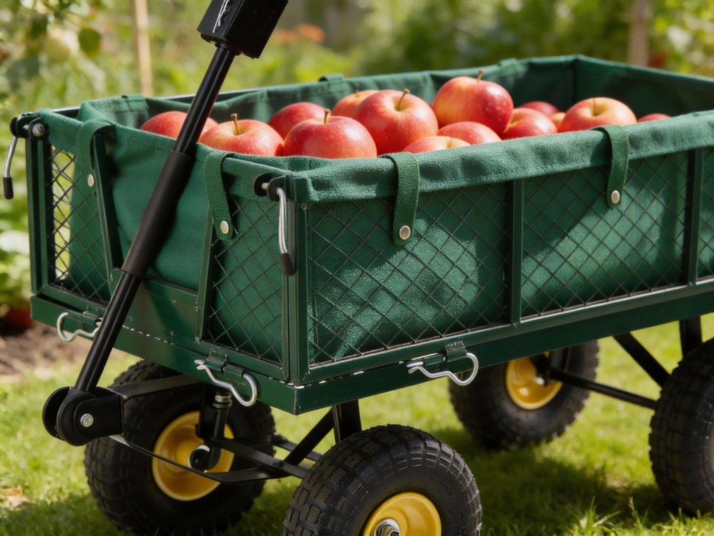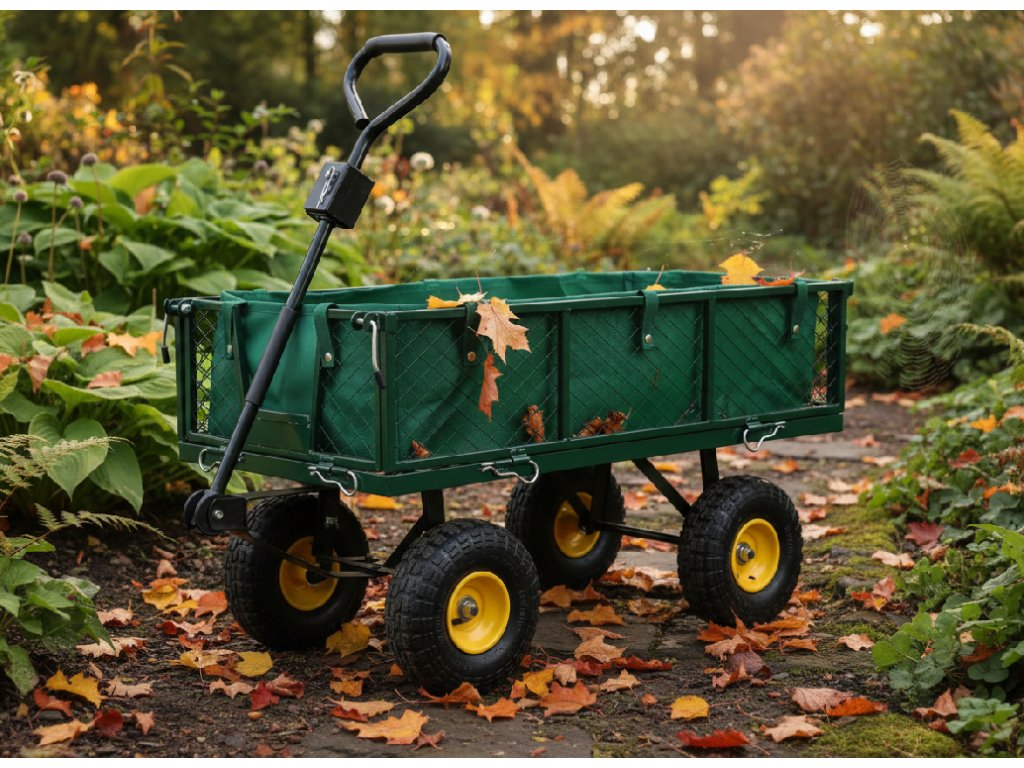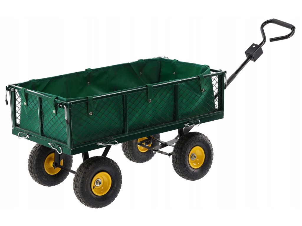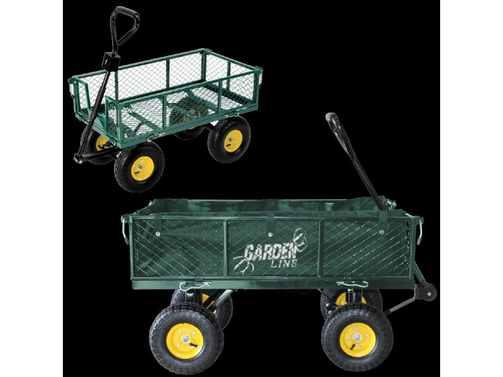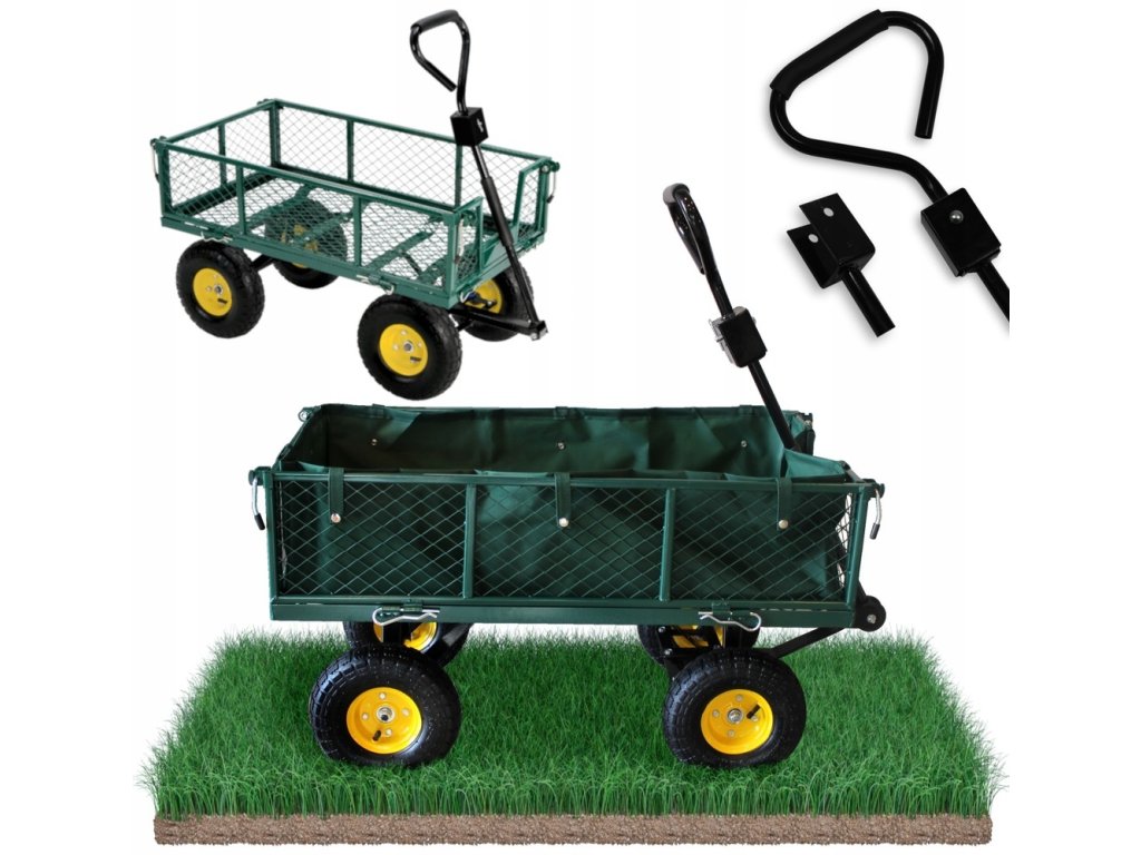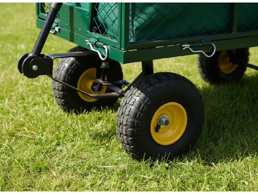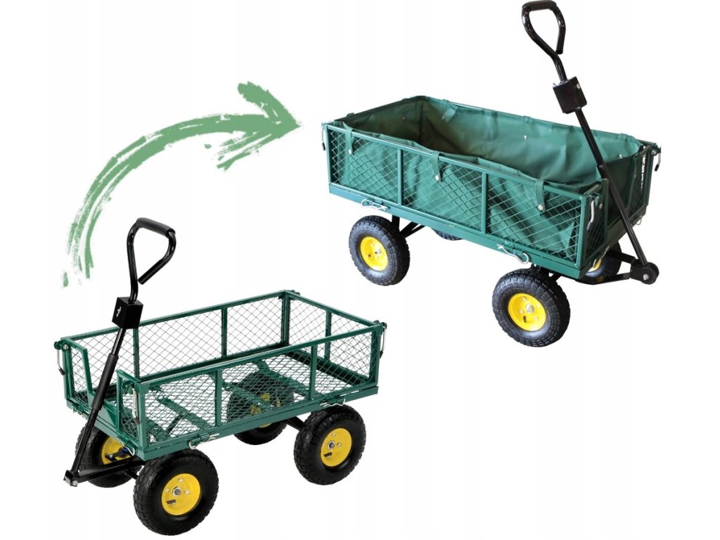 Căruciorul de grădină dual, de culoare verde, este destinat transportului de încărcături ușoare și grele de până la 300 kg, unelte și diverse bunuri. Echipat cu roți umflate cu model, mânere antiderapante și un ax rotativ care permite o rotire de până la 180°, făcând lucrul cu căruța simplu și confortabil.