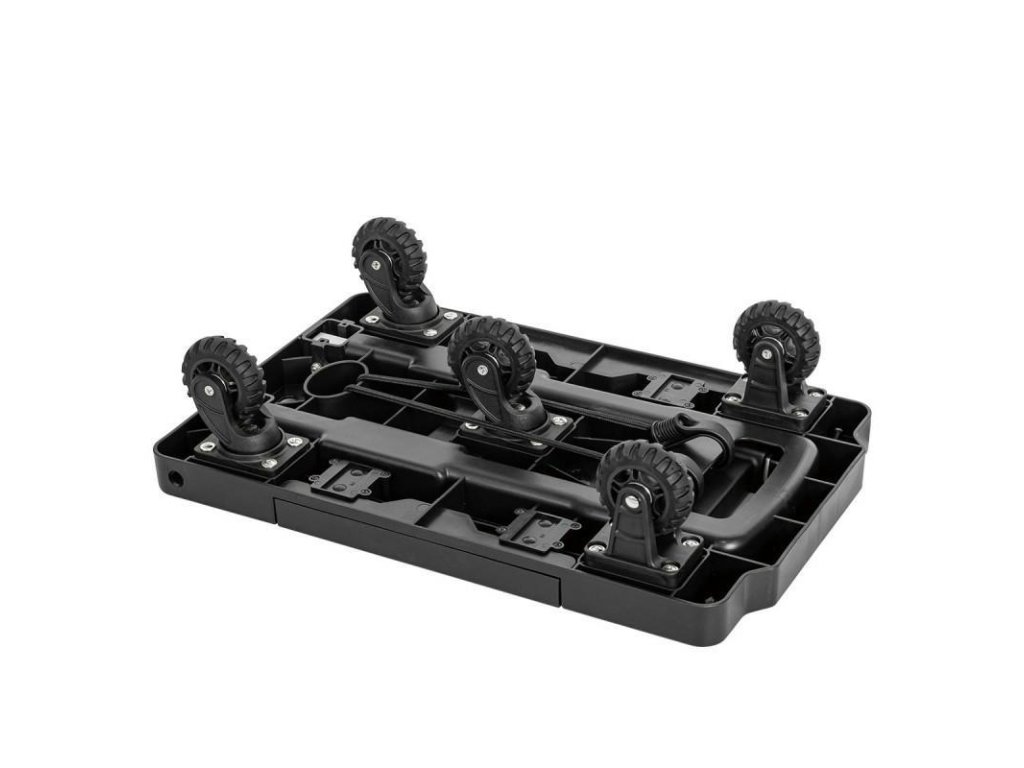 - Roțile fixe în număr de 5 bucăți permit distribuția uniformă a încărcăturii pe întreaga platformă a căruciorului.