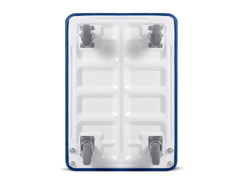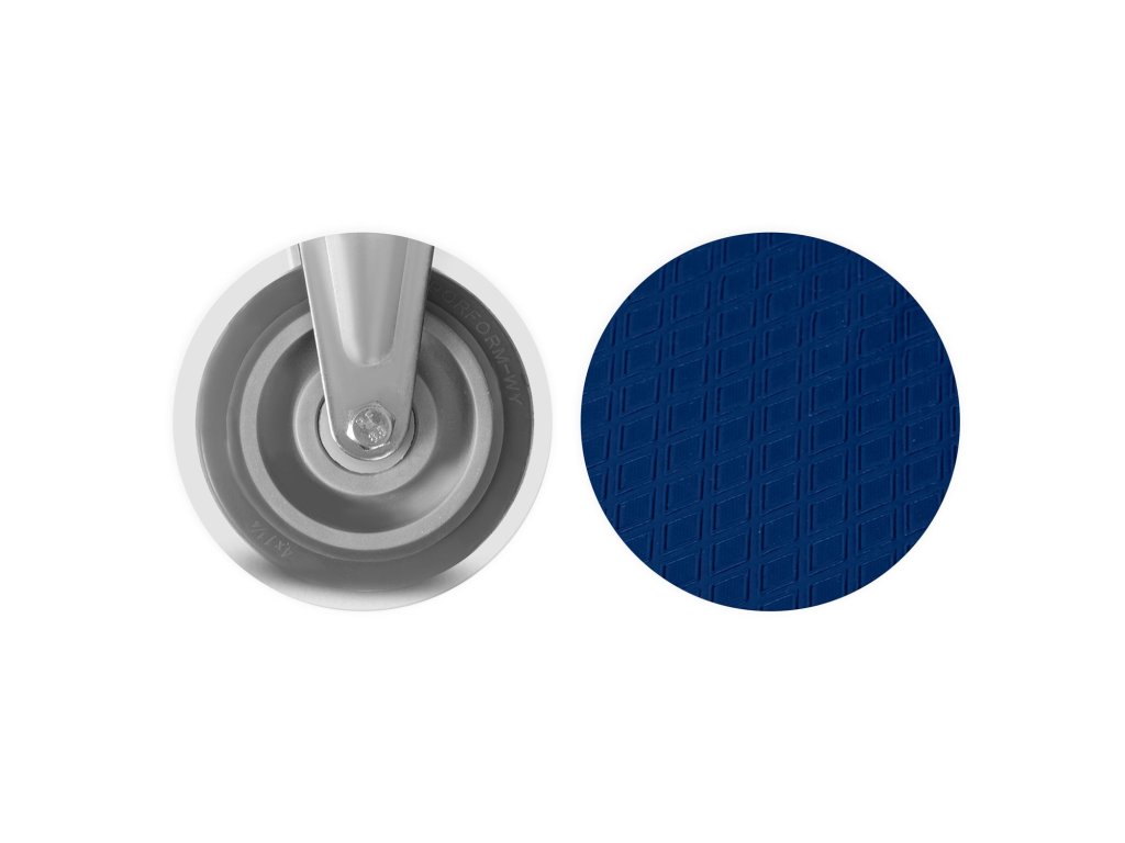 - căruciorul are 2 roți complet pivotante cauciucate, cu armatură metalică, ceea ce permite manevrarea eficientă și precisă,