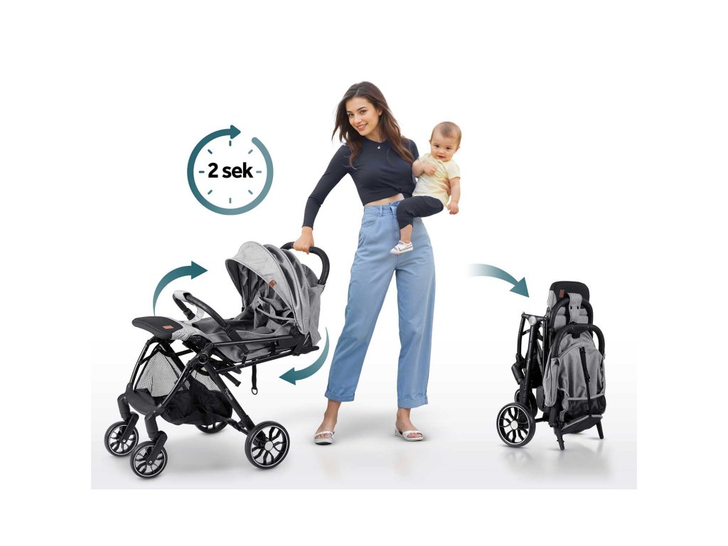 - Plierea căruciorului cu o singură mână în 2 secunde!