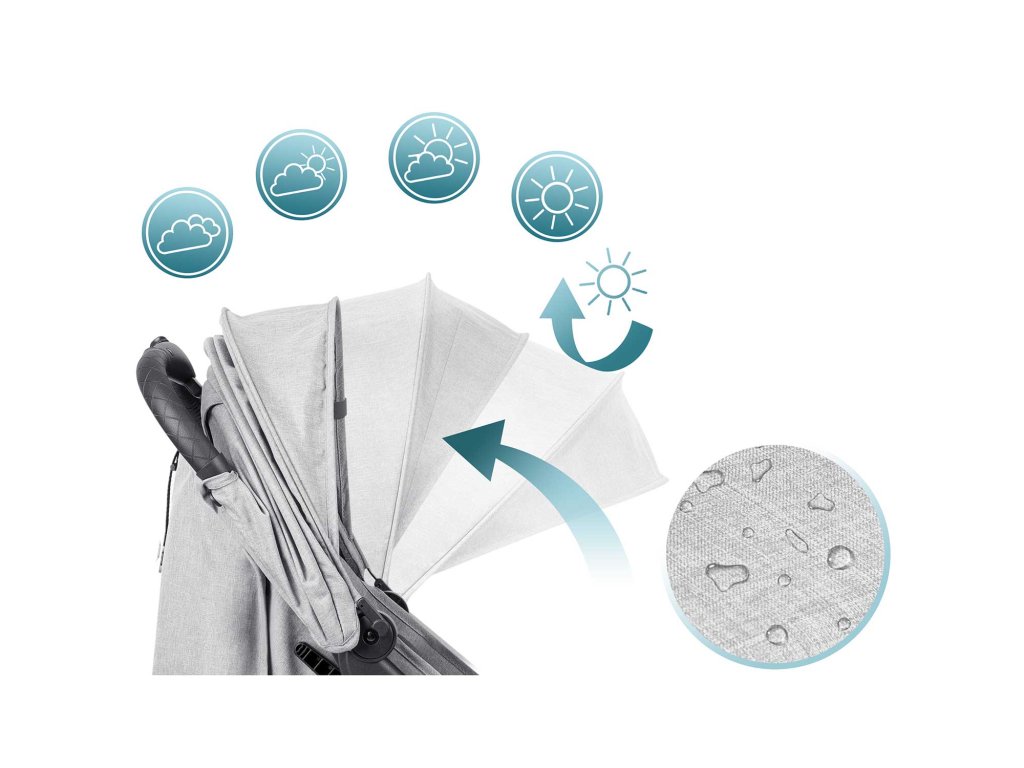 Permite protejarea copilului de lumina directă a soarelui, vânt sau ploaie ușoară.