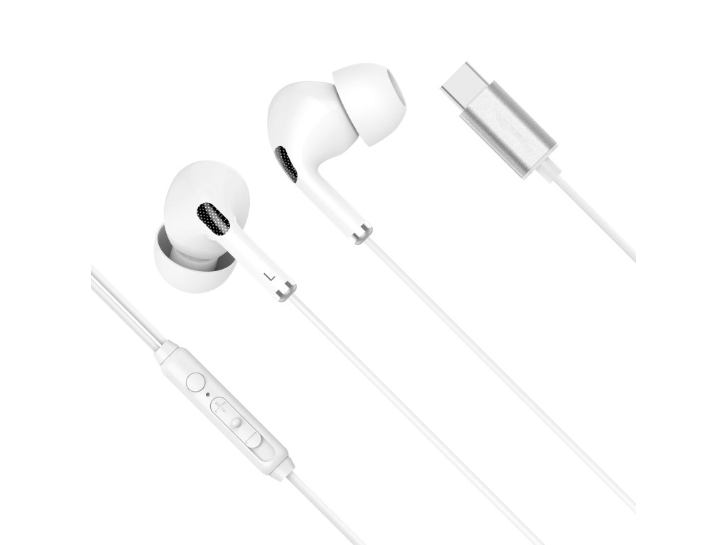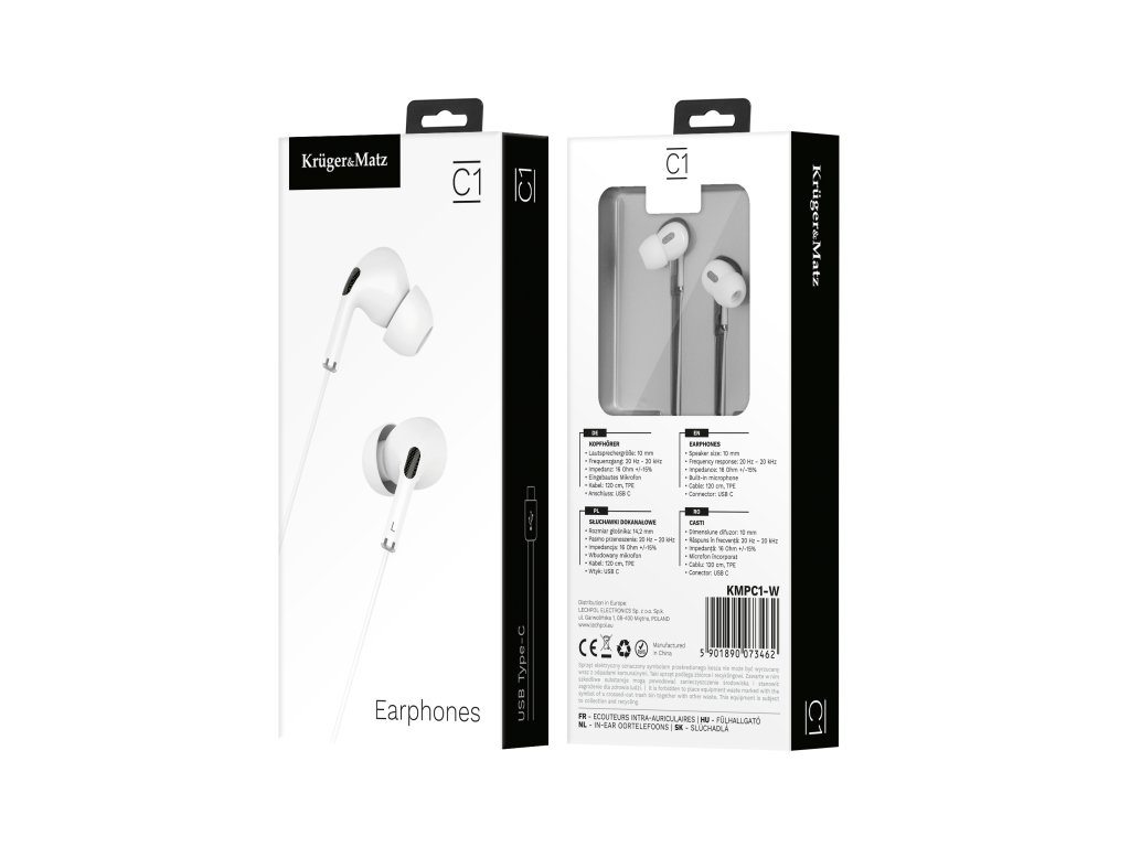 Căști intraauriculare cu microfon pe USB-C Kruger&Matz C1 albe