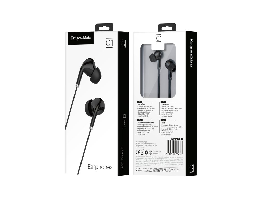 Căști intraauriculare cu microfon pe USB-C Kruger&Matz C1 negre