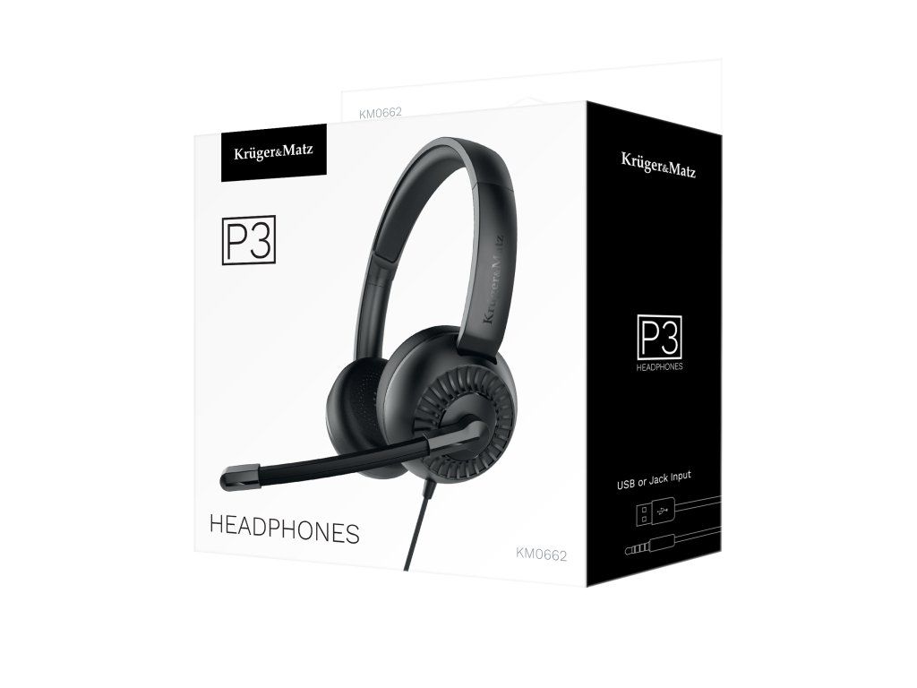 Căștile Kruger&Matz P3 se adaptează ușor nevoilor dumneavoastră. Cu ajutorul conectorului Jack de 3,5 mm, le puteți conecta direct la computer sau telefon. În set se află și un adaptor USB cu panou de control, care facilitează gestionarea confortabilă a celor mai importante funcții ale căștilor.