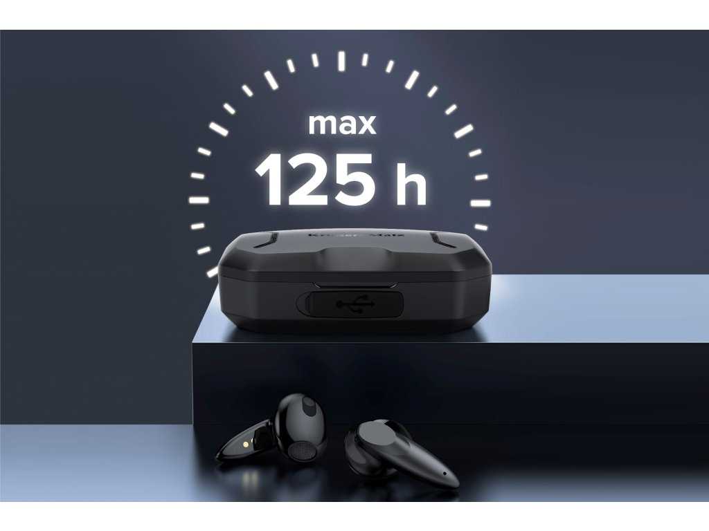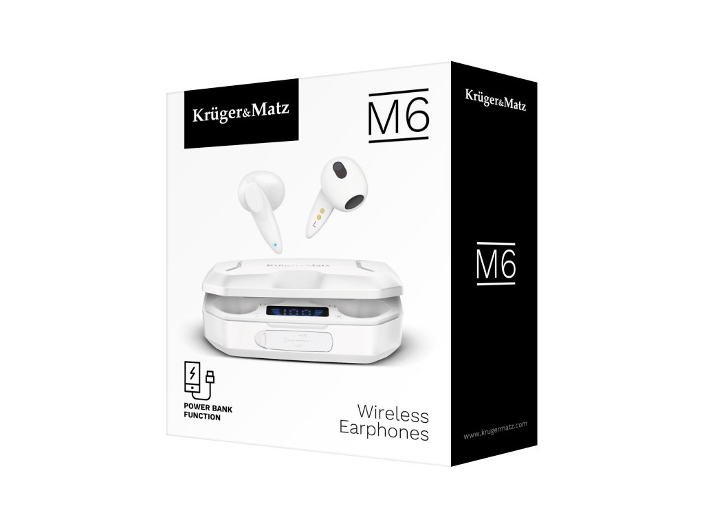Căștile Kruger&Matz M6 sunt echipate cu o baterie de 25 mAh, care asigură până la 5 ore de funcționare pentru ascultarea muzicii și pentru apeluri telefonice.