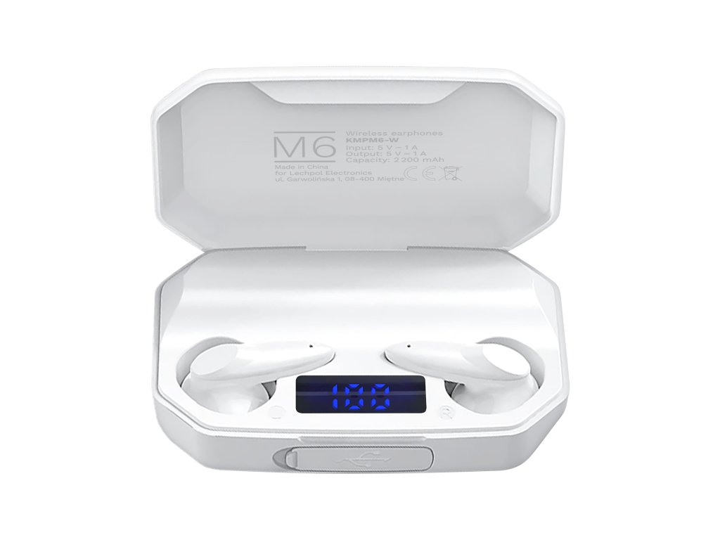 Carcasa pe care o primiți cu căștile fără fir M6 permite nu doar încărcarea și depozitarea lor în siguranță. Datorită bateriei încorporate cu capacitate de 2200 mAh, devine un power bank, care permite încărcarea altor dispozitive.