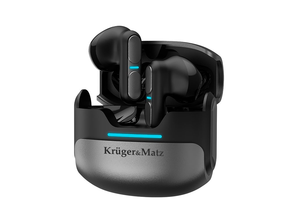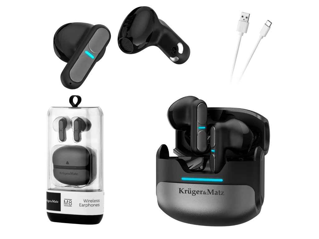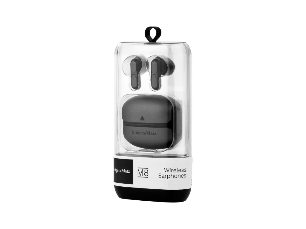 Vrei să simți libertatea absolută Alege căștile complet wireless intraauriculare Kruger&Matz M8. Pentru a asigura confortul maxim, căștile se conectează wireless nu doar la telefonul tău, ci și între ele.