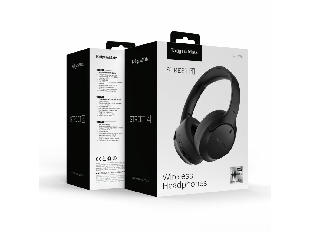 Căști wireless over-ear cu ANC, Kruger&Matz Street 4, negre