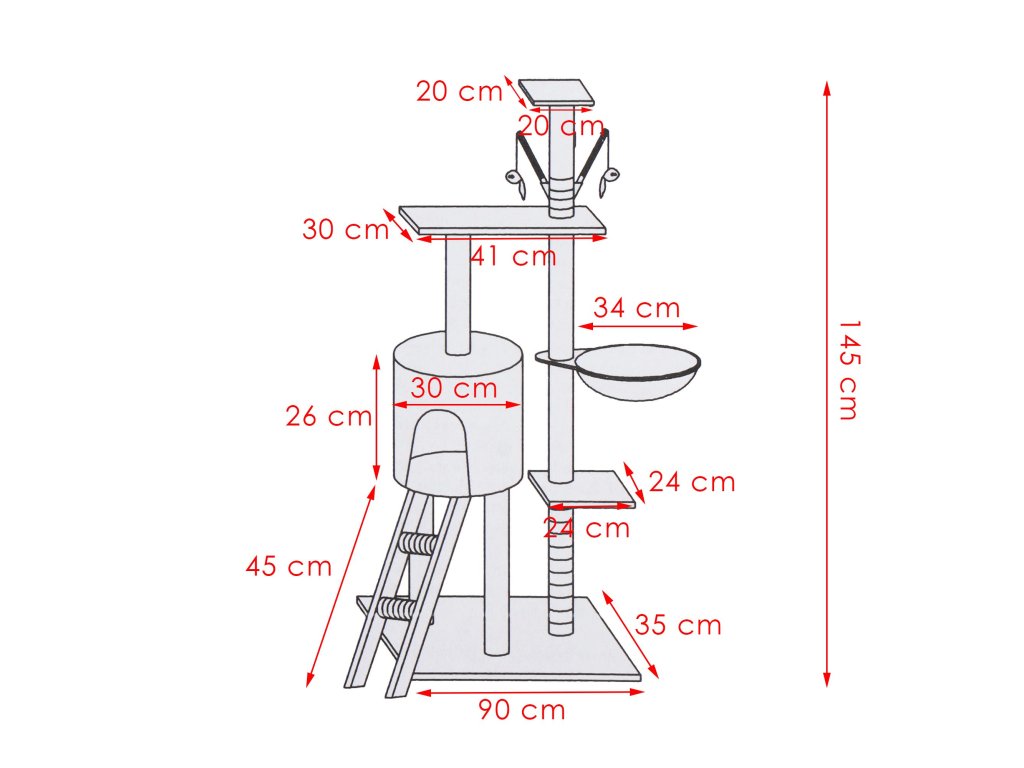 - Scară: 45 x 19 x 4,2 cm (înălțime x lățime x diametrul stâlpilor)