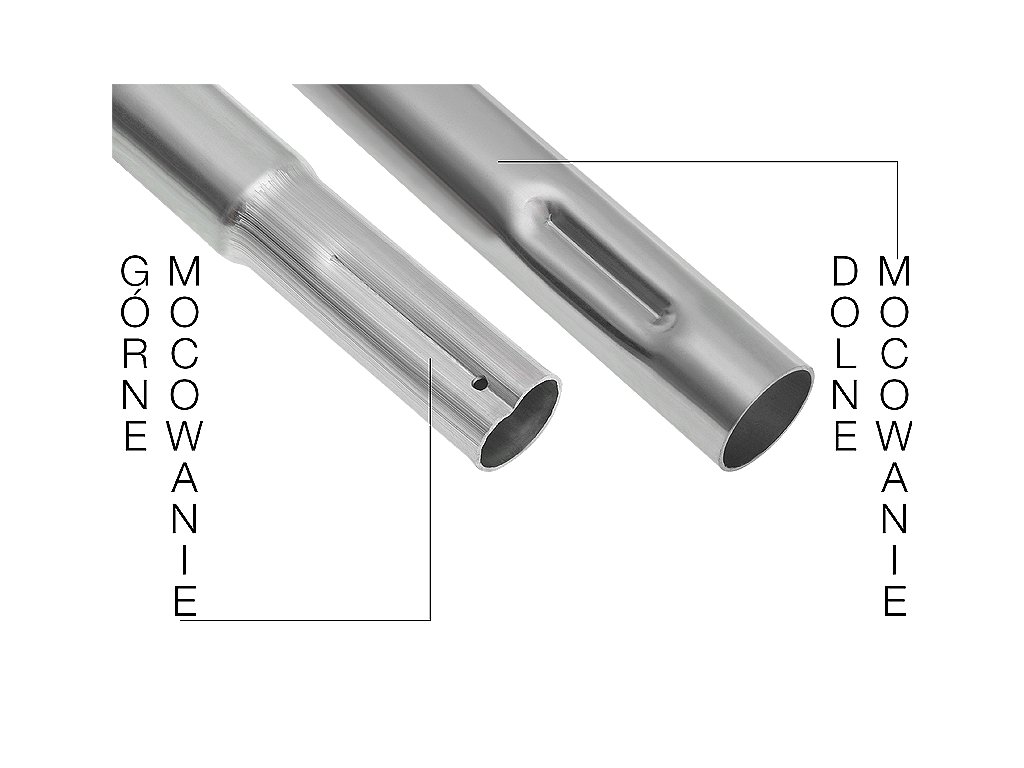 Stâlpul are un capăt conic și ghidaje modelate care permit conectarea sa la un alt stâlp pentru prelungire sau la un suport.- Înălțime: 1500 mm- Diametrul țevii: 38 mm