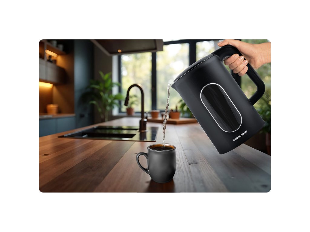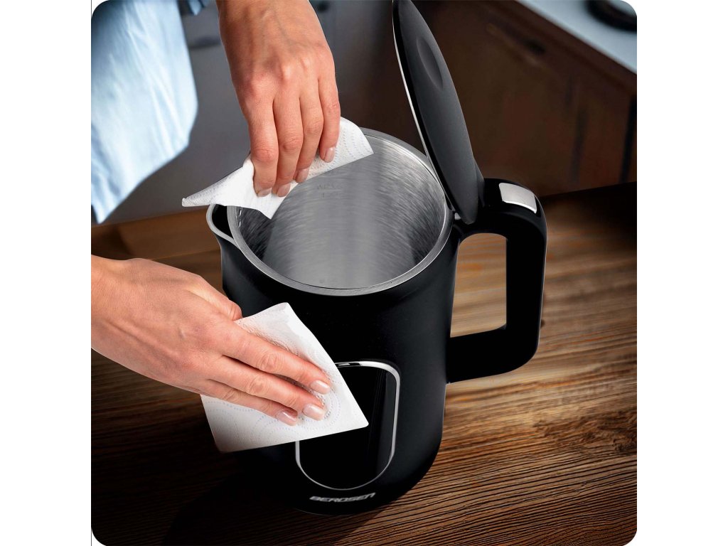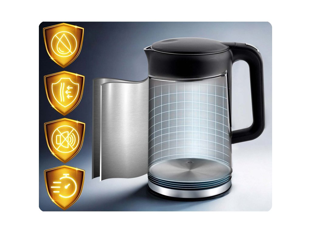 Ceașca se oprește automat după ce apa fierbe și protejează împotriva pornirii pe uscat.