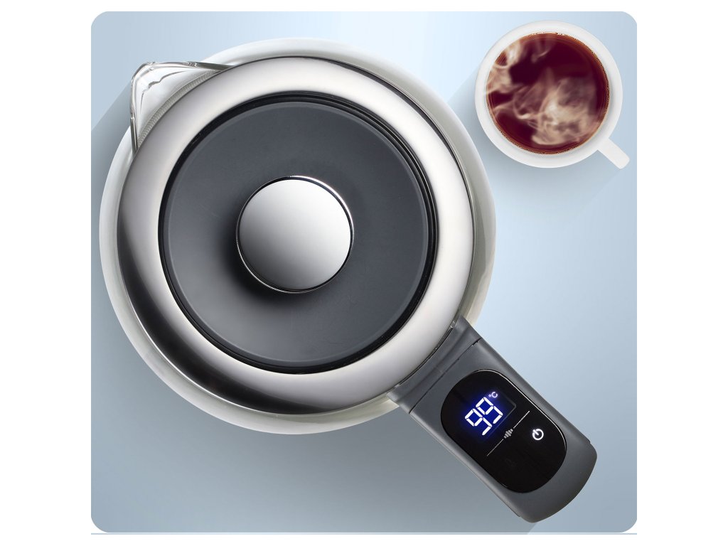 Ceainic cu ecran tactil. Sticlă borosilicată.
