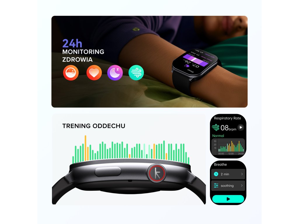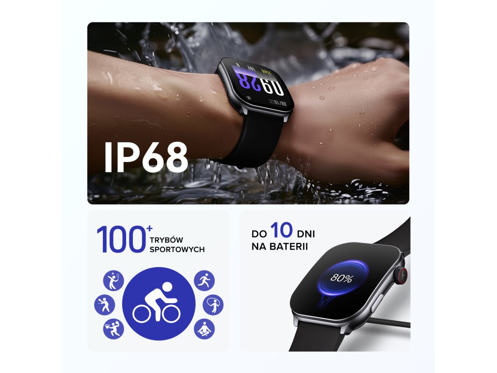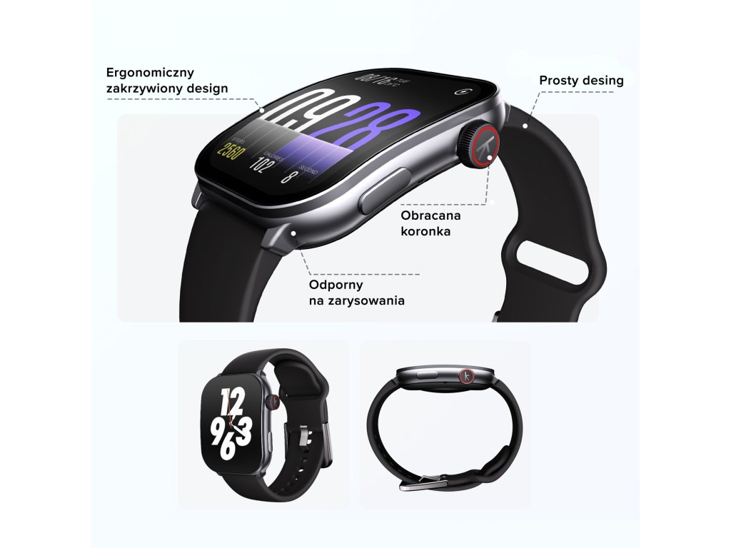 Funcții: Monitor de somn, pedometru, contor de calorii arse, măsurarea oxigenării sângelui, gestionarea apelurilor, gestionarea muzicii, notificări telefonice, alarmă, notificări de inactivitate, cronometru, timer, meteo