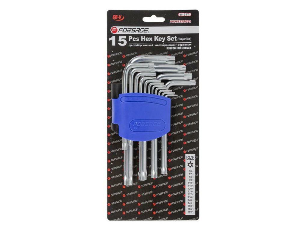 Set 15 bucăți de chei duble TORX, în dimensiuni de T6H la T60H.