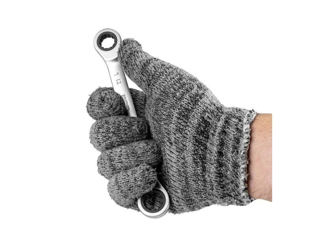 Cheie cu ochi plat, duală cu ratchet 12×14 mm este un instrument profesional conceput pentru persoanele care așteaptă maximă eficiență și confort în muncă. Datorită mecanismului de ratchet, poți desface și strânge șuruburile fără a fi necesar să scoți cheia din elementul de conectare – ceea ce vei aprecia în mod special în locuri strâmte și greu accesibile.