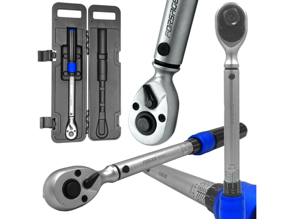 - care facilitează fixarea adaptoarelor.Cheile din seria Forsage garantează rezistența de 5 000 de cicluri de muncă fără a necesita calibrarea. Toleranță de 4%, mecanism ergonomic de blocare a reglementării momentului, scară metrică liniară (Nm) și în inch (FLT), design excelent