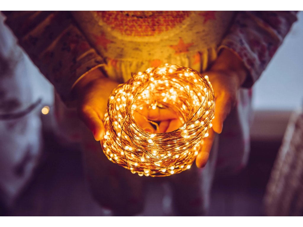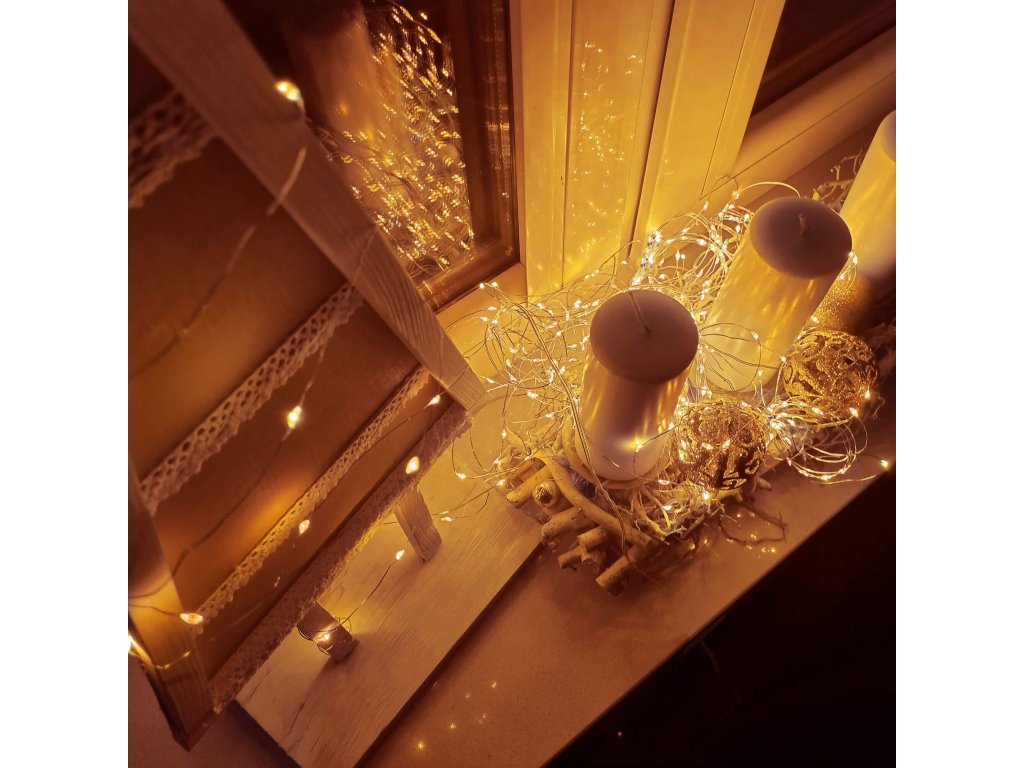 - Lămpi pe fire de cupru durabile, de culoare argintie