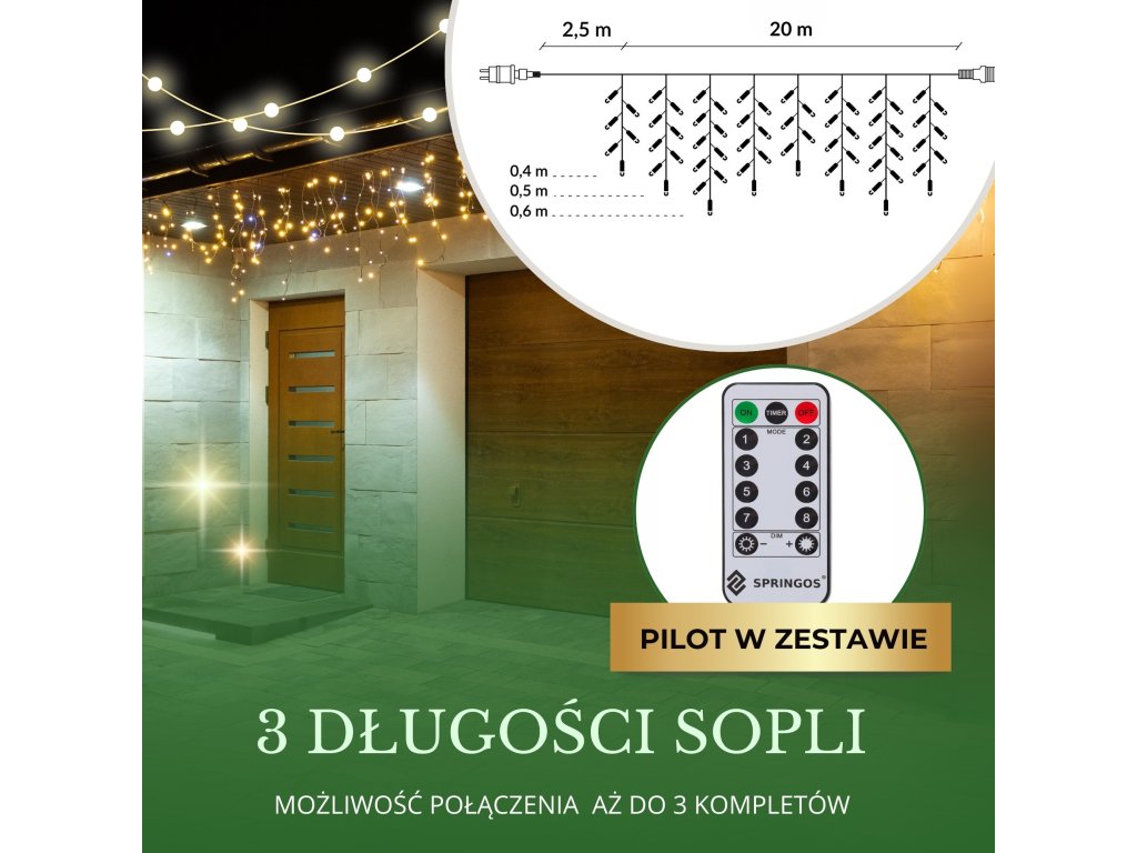 - Posibilitate de conectare a maxim 3 seturi suplimentare de lanțuri luminoase
