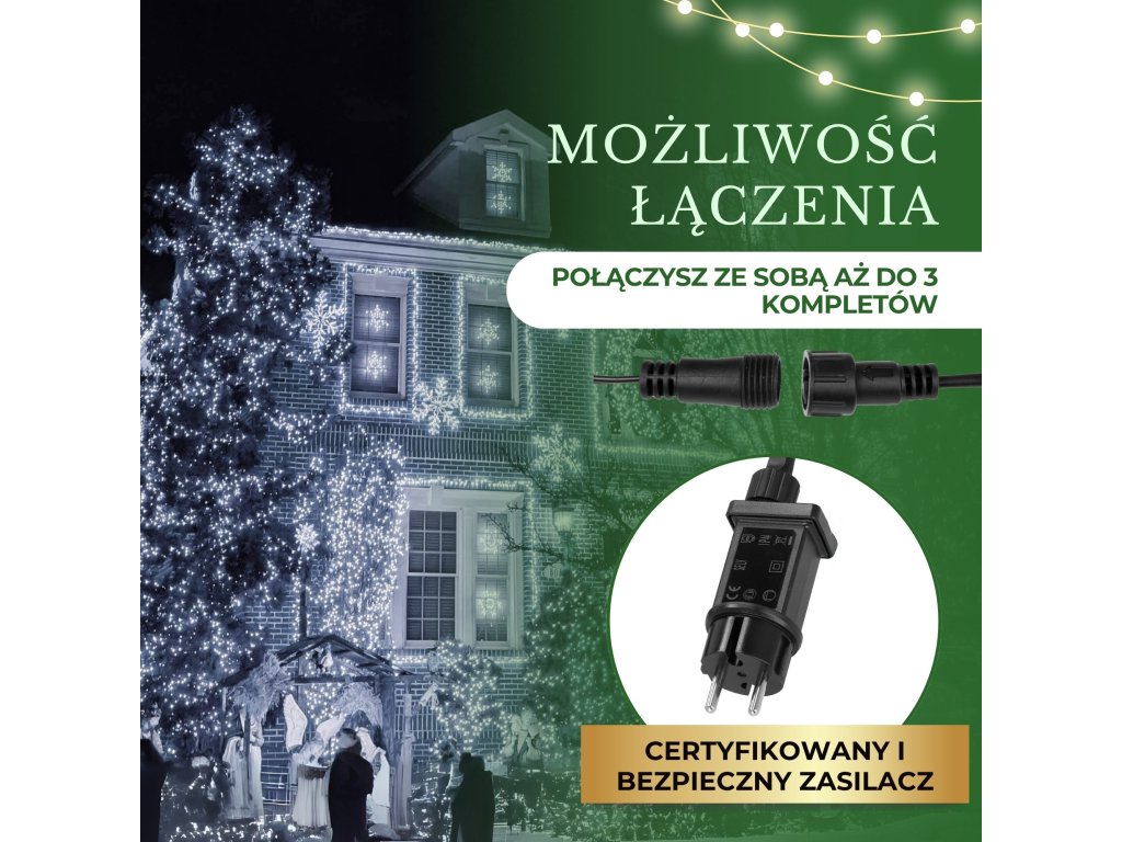 - Posibilitatea de conectare a până la 3 lanțuri de lumini