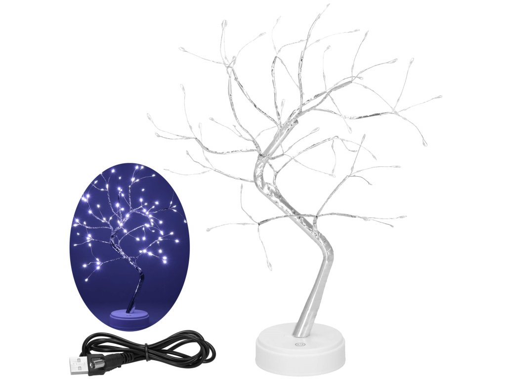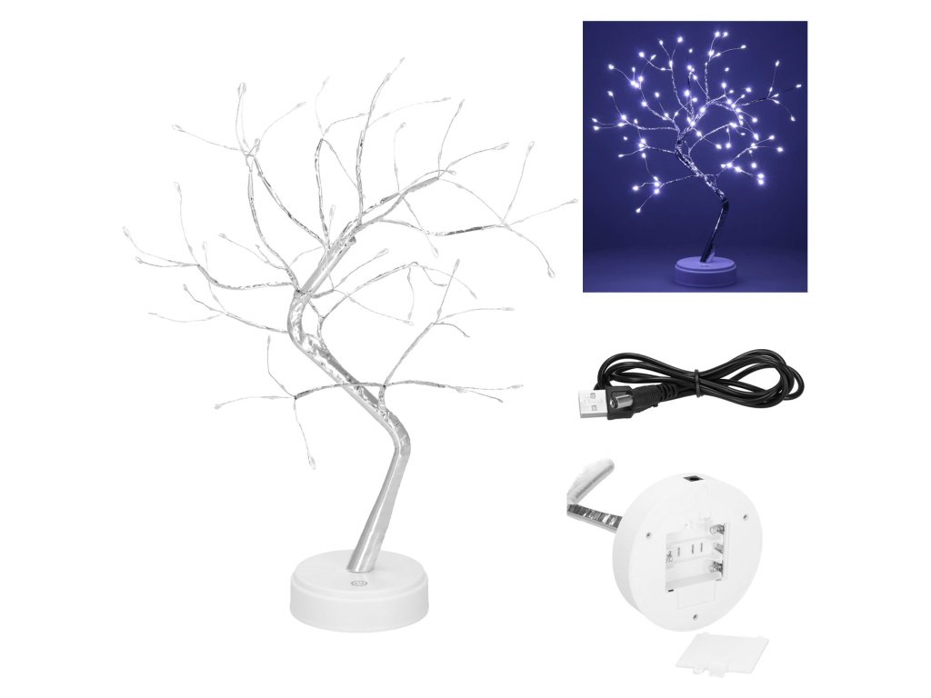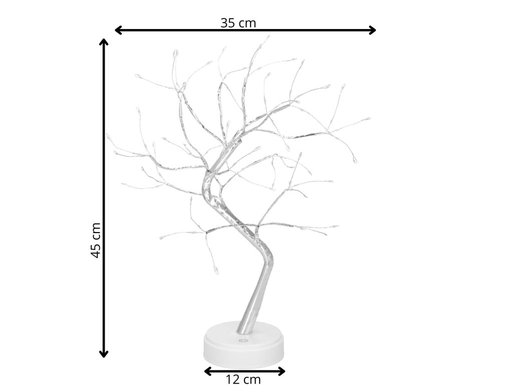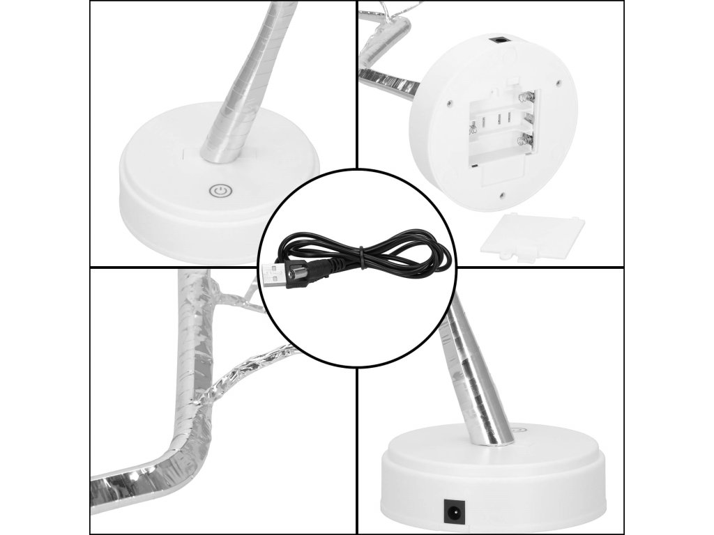 - Din trunchiul principal pornesc 5 grupuri de crenguțe, câte trei crenguțe în fiecare. Fiecare crenguță se împarte la capăt în trei fire cu LED-uri.