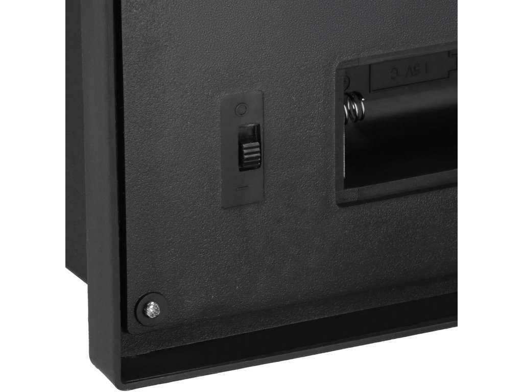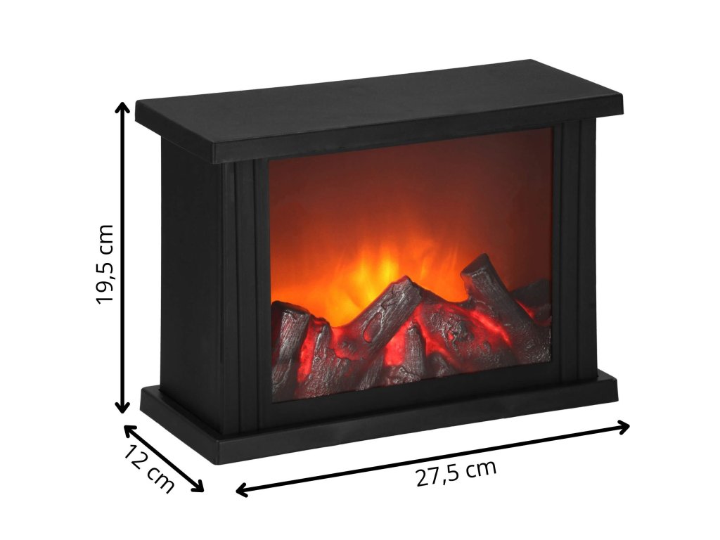 - În spatele sticlei transparente se află o imitație de lemn arzând. Odată aprins, felinarul creează un efect de incandescență a lemnului și "flăcări" mobile deasupra.