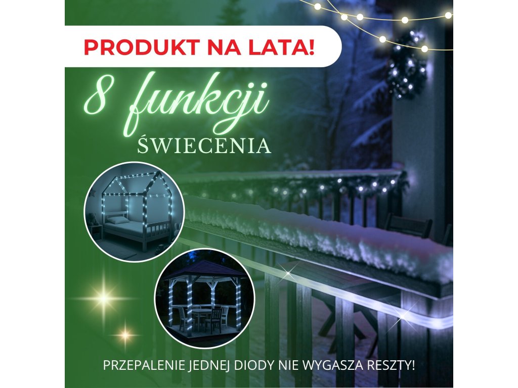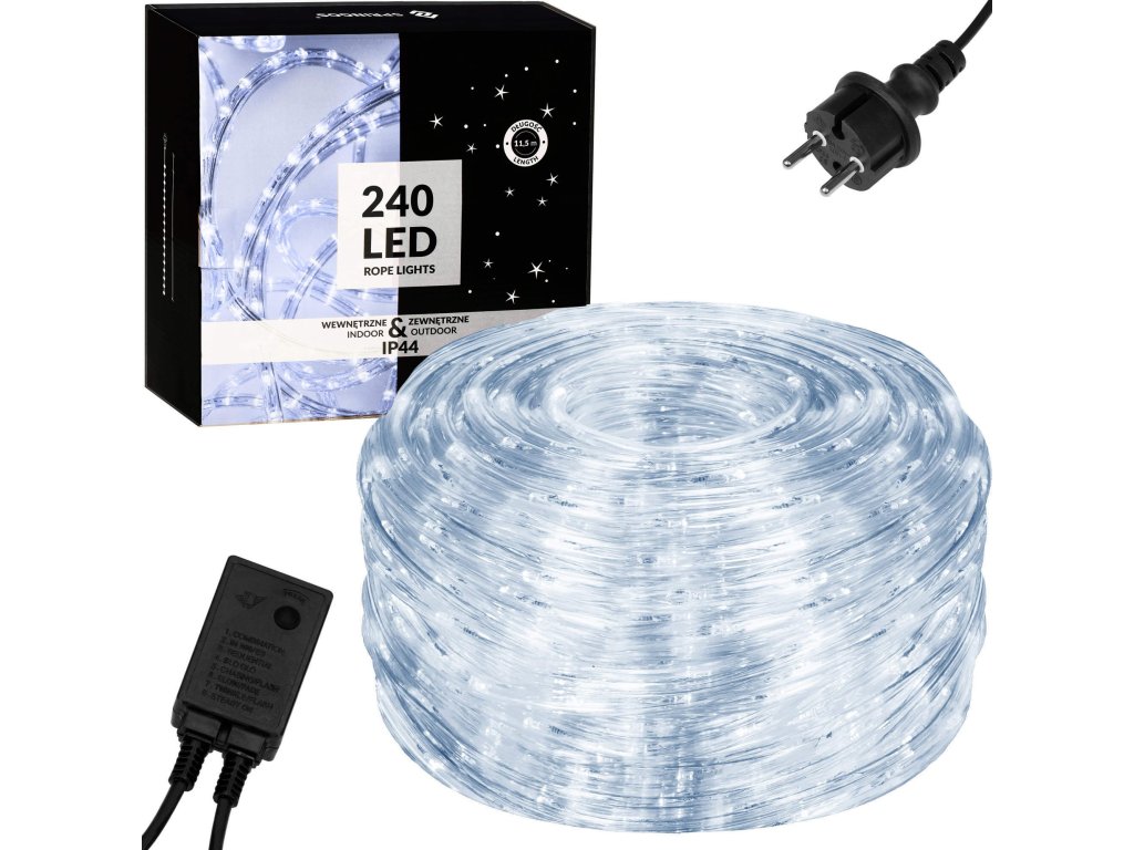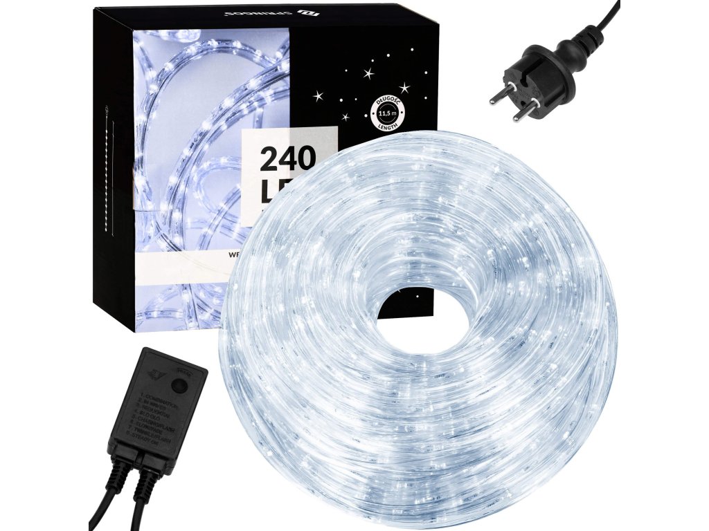 - Lungimea setului: 11,5 m (partea luminoasă 10 m + cablu + ștecăr)