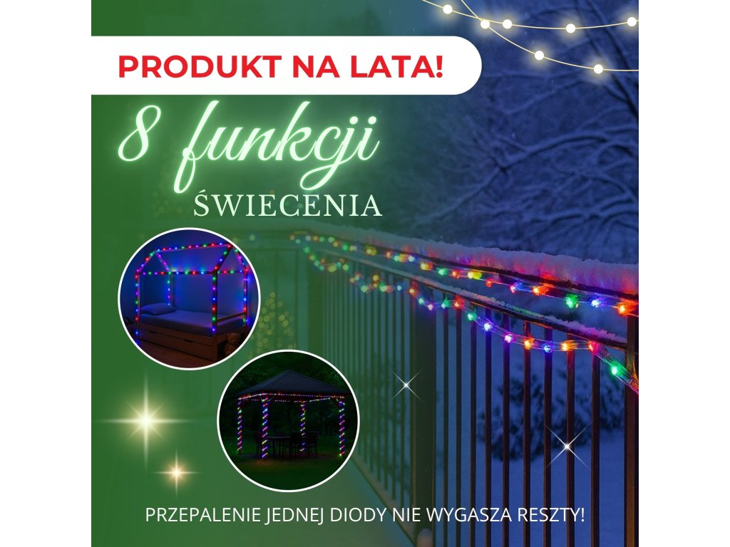 - Lungimea setului: 11,5 m (partea iluminată 10 m + cablu + priză)