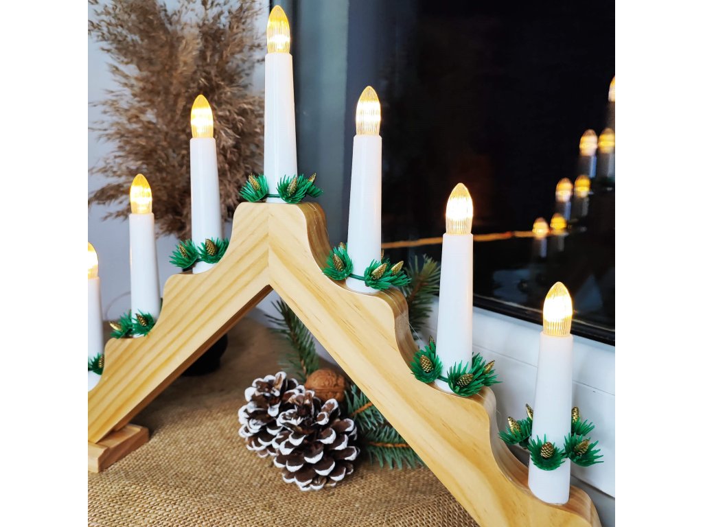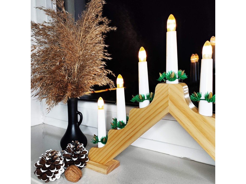 - Coroane verzi în jurul lumânărilor artificiale cu conuri (5 conuri)