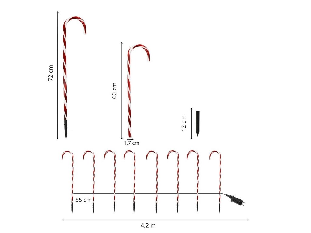 - Înălțimea bastonului de zahăr: 72 cm