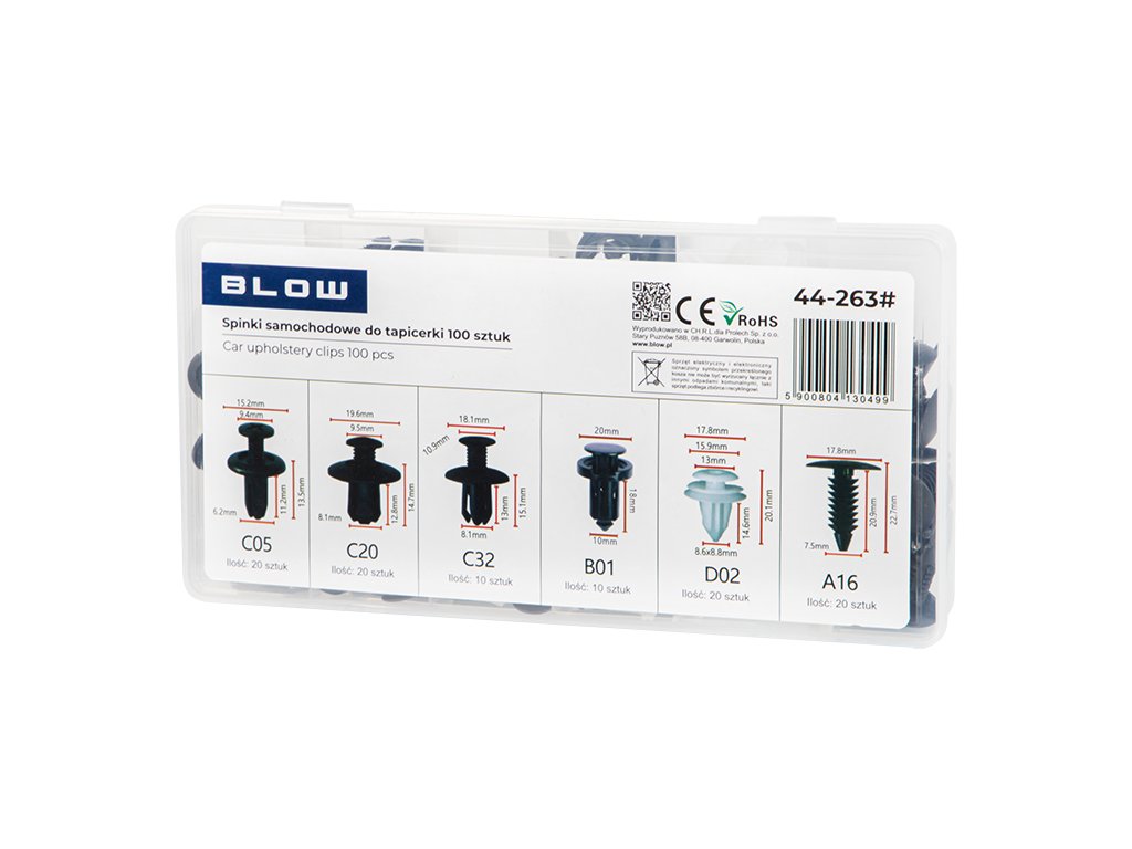 Set universal de 100 de piese diferite de cleme, ace și suporturi pentru mașină.