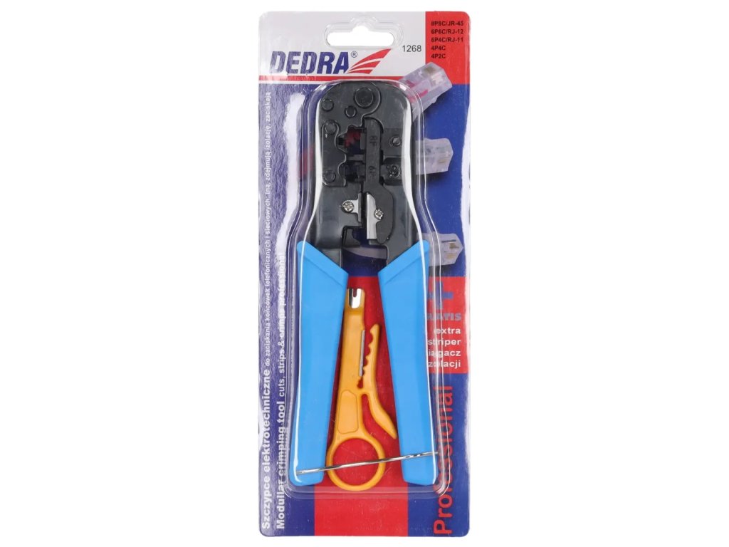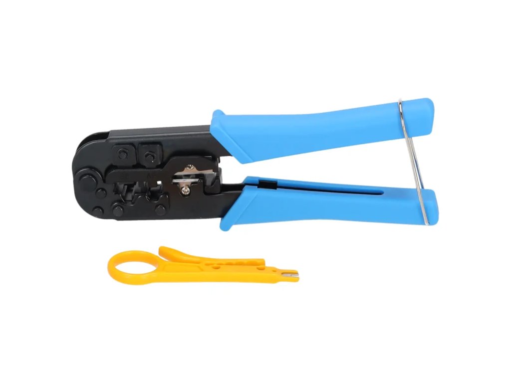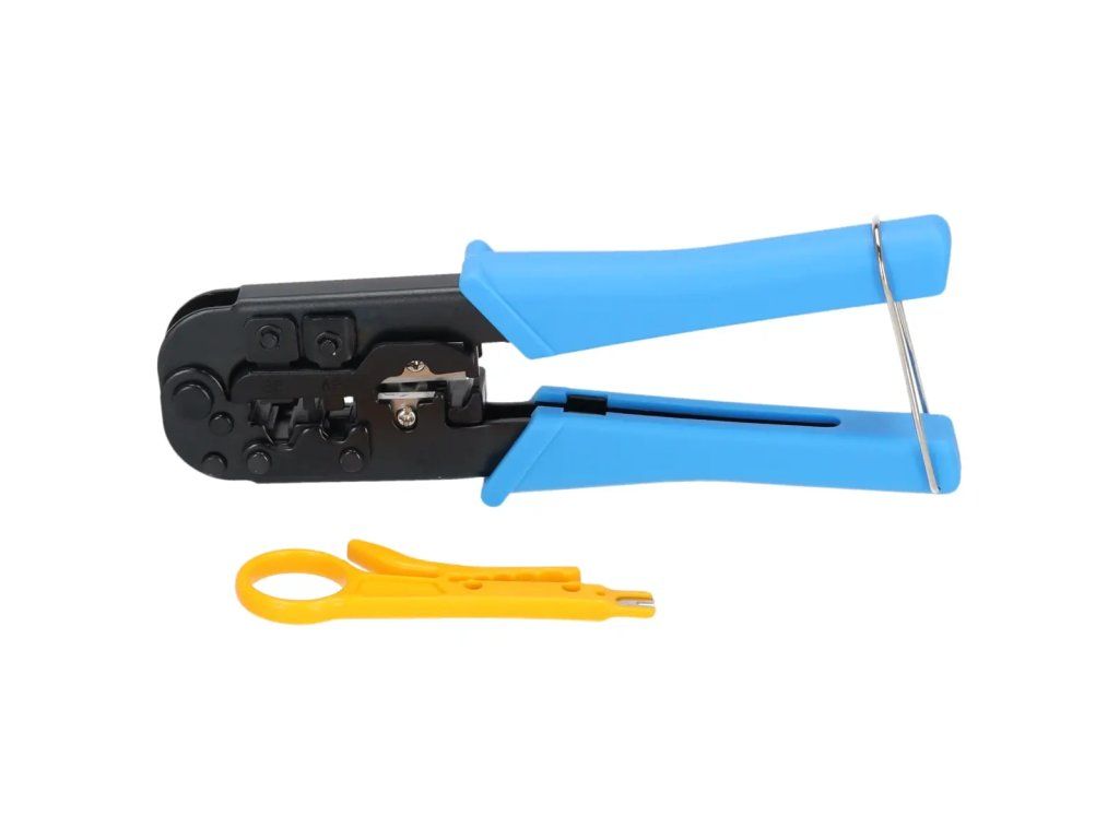Sunt folosiți pentru sertizarea conectorilor de rețea și telefonie. Mânere cauciucate pentru un confort mai mare în utilizare. Setul include și un clește de tăiere a cablurilor.Proprietăți: