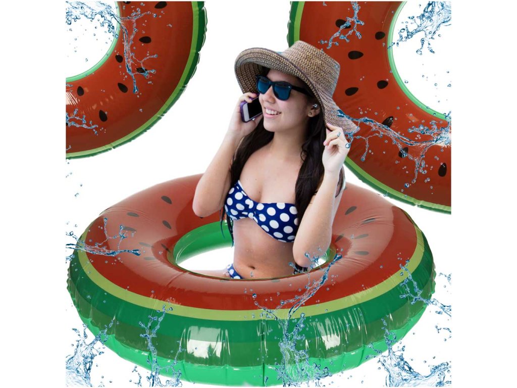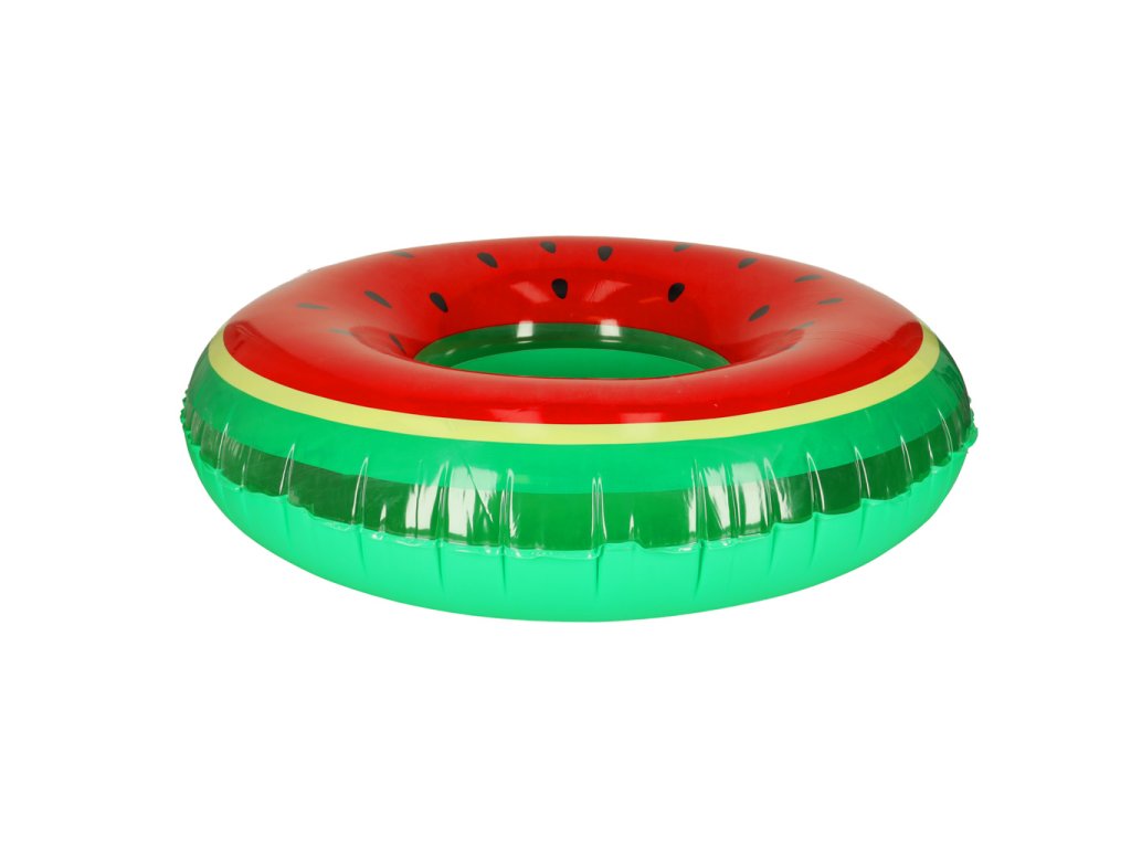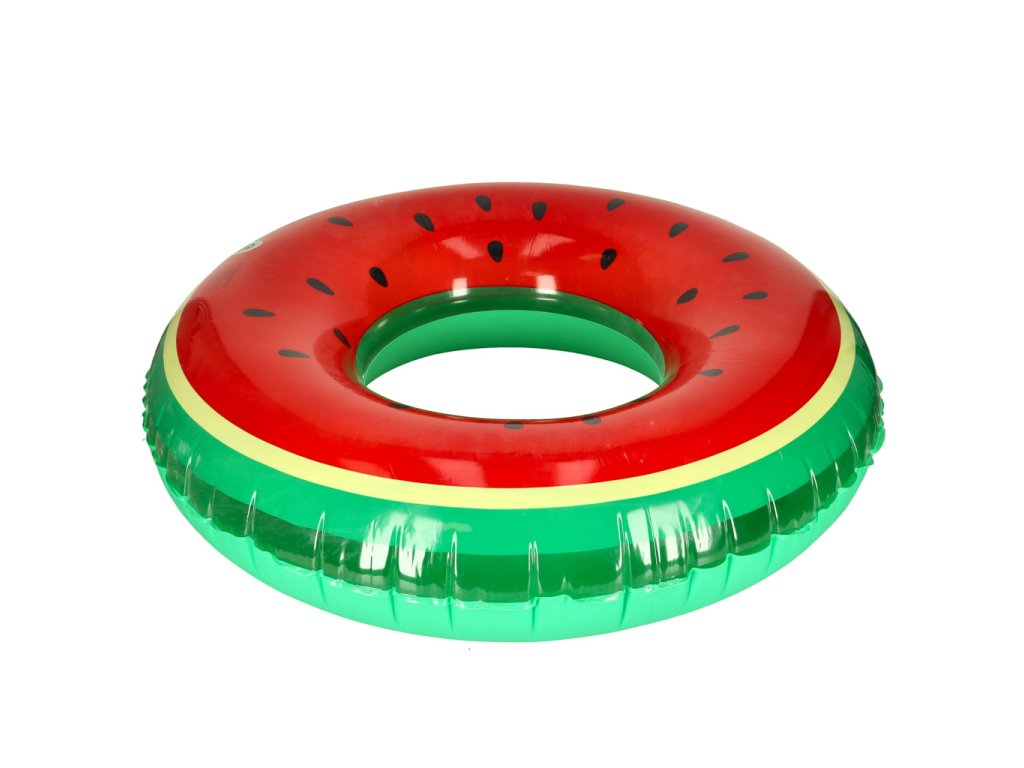 Inel gonflabil colorat în formă de Pepene, fabricat din plastic PVC de înaltă calitate, care garantează durabilitate.