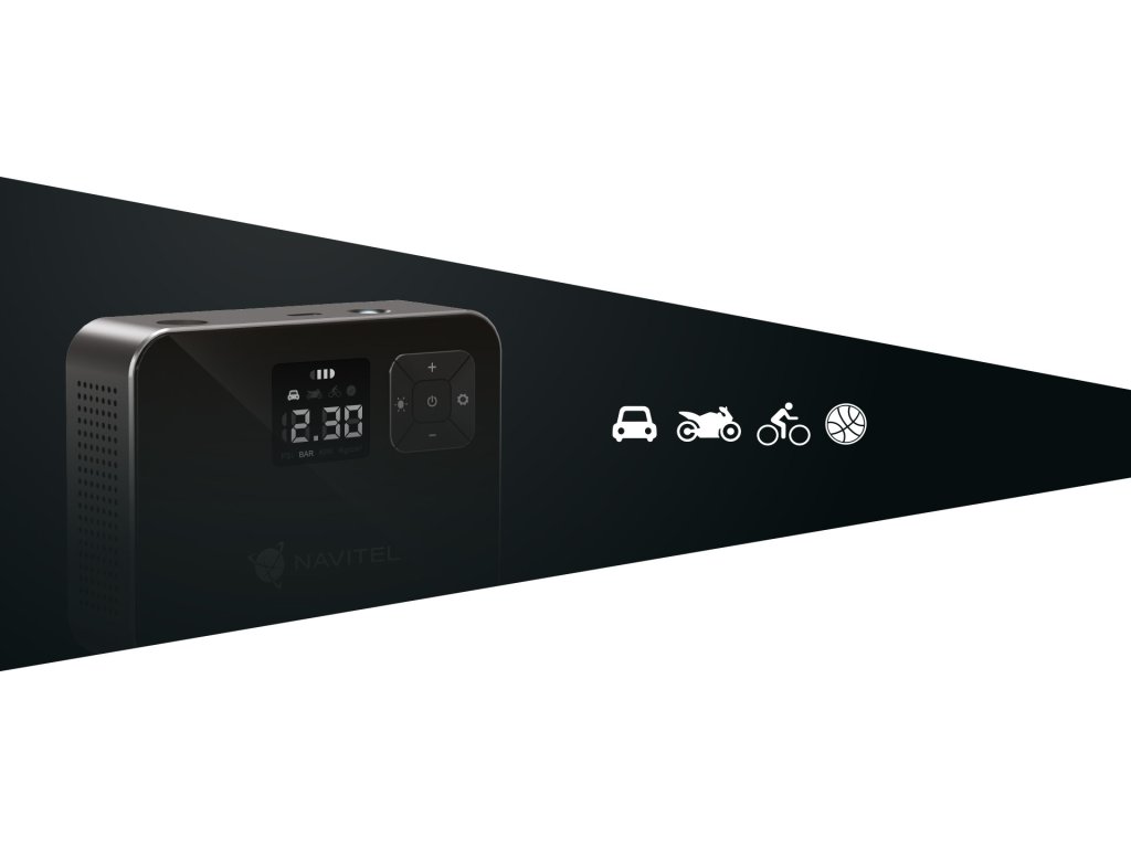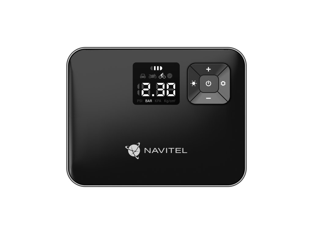 Datorită ecranului digital luminos, veți vedea indicii necesari chiar și în întuneric total. Folosiți NAVITEL AIR 15 AL nu doar pentru umflarea anvelopelor, ci și pentru verificarea presiunii acestora. Conectați dispozitivul și porniți alimentarea, iar valoarea inițială de pe ecran va indica presiunea curentă din anvelope.