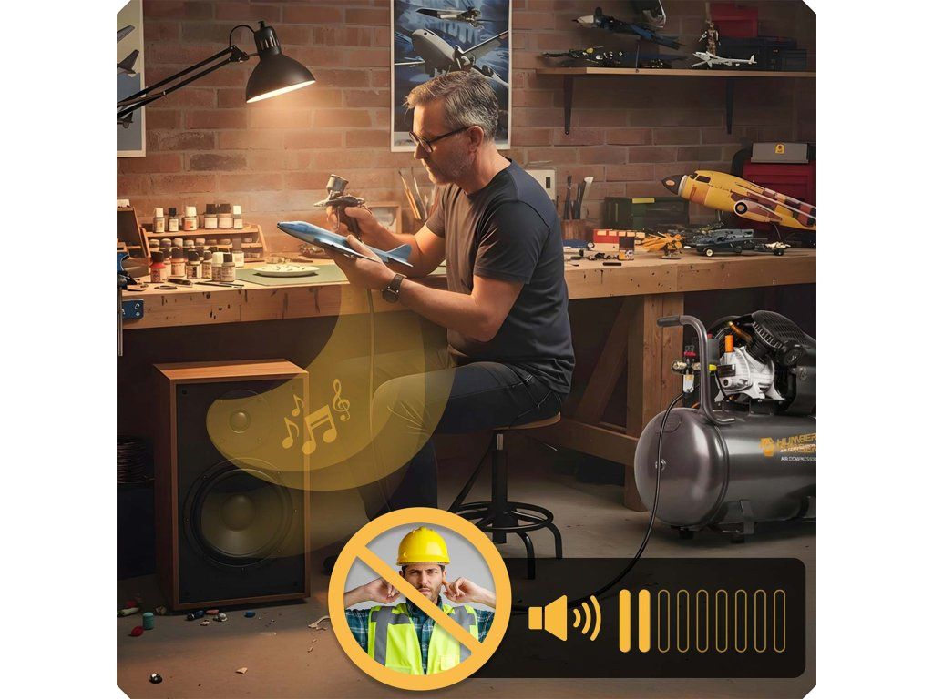 Compresoarele cu ulei sunt mult mai silențioase decât modelele fără ulei, ceea ce asigură o lucru confortabil în atelier sau garaj. Datorită lubrifierii cu ulei, aparatul funcționează lin și stabil