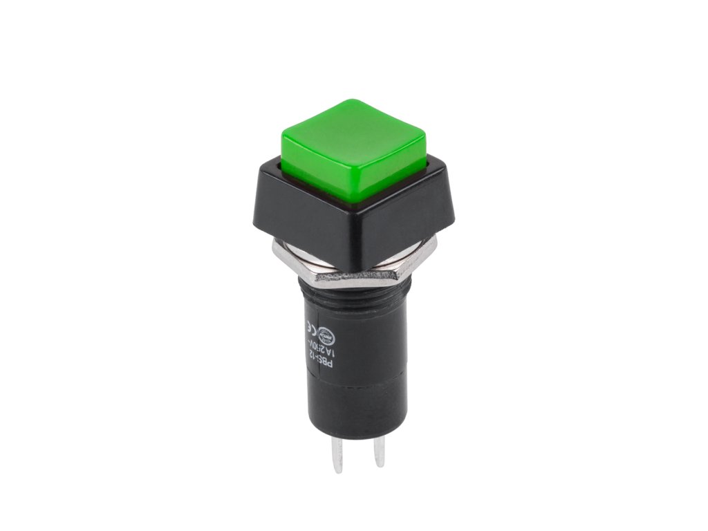 PRK0013D Comutator cu buton-pătrat,2-pin, ON (OFF), verde