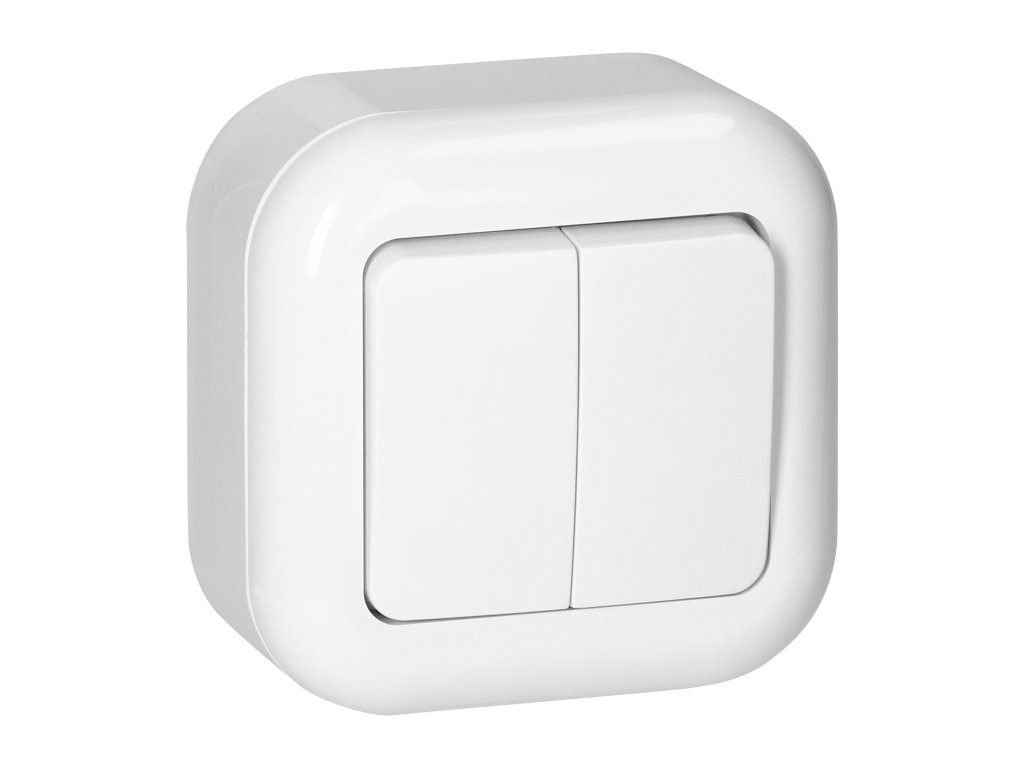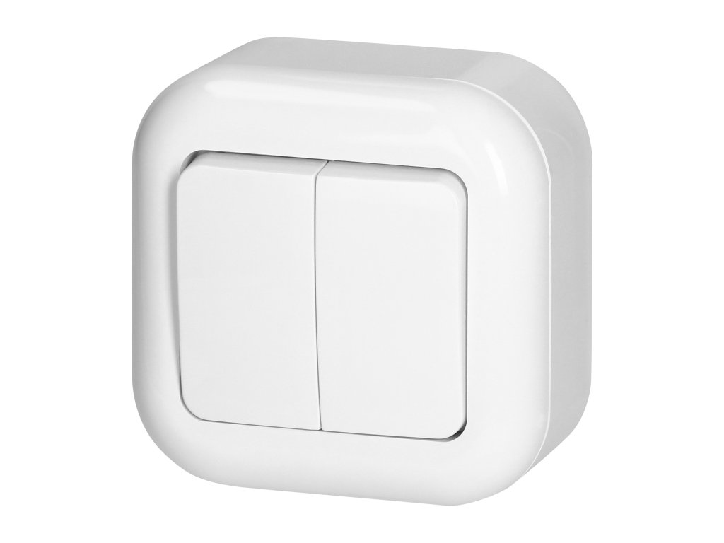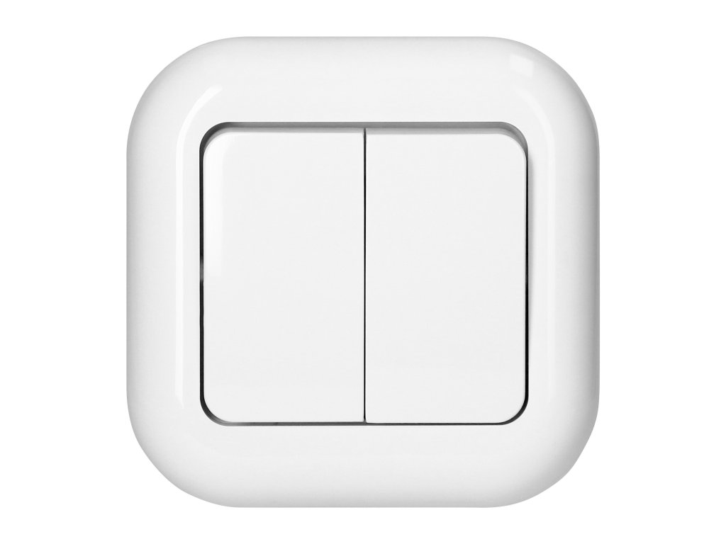 Comutator cu două butoane montat la suprafață, 10A, 250V, VENTILATOR, alb