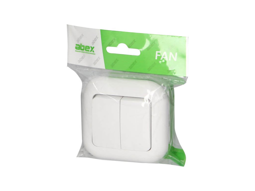 Comutator încastrat cu două butoane, 10A, 250V, VENTILATOR, alb