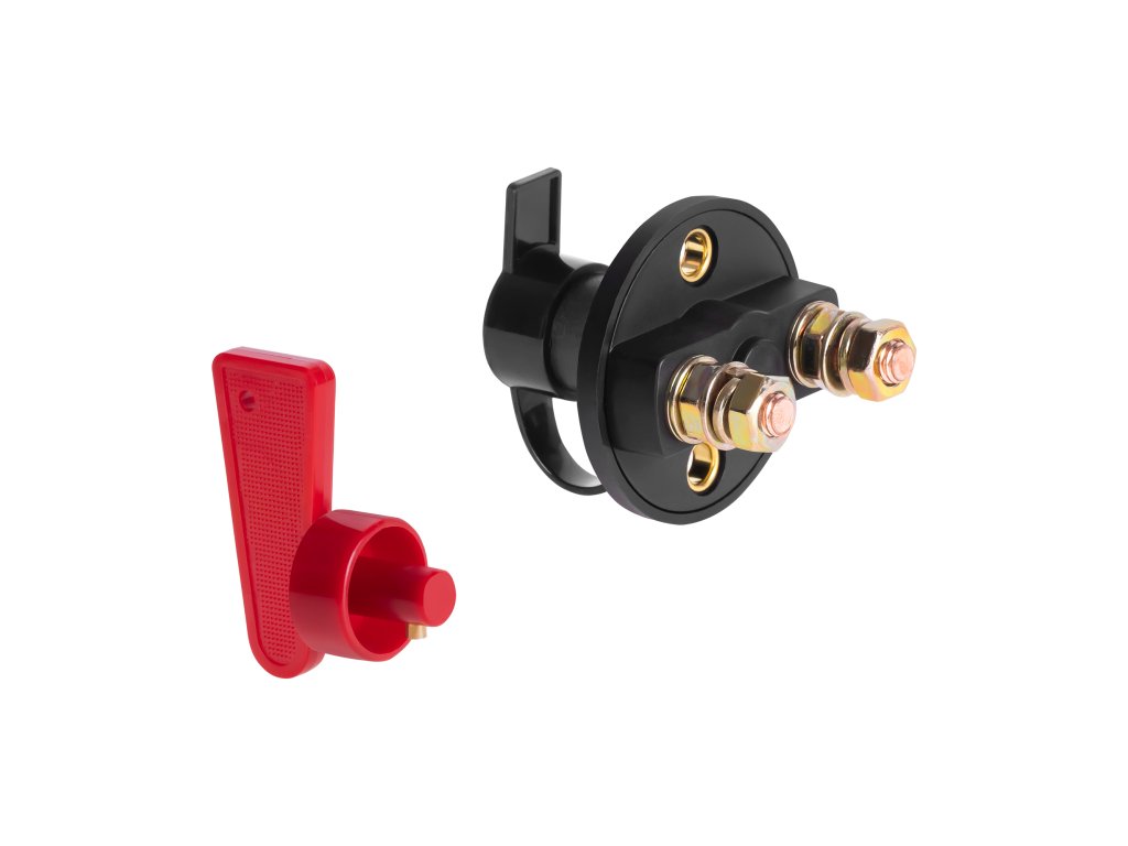 Specificații tehnice: Tensiune de operare: 12 V / 24 V Curent maxim de operare: 100 A Capacitate maximă: 200 amperi timp de 5 secunde Conexiune: șuruburi de cupru M8 Adâncimea de montaj: Diametrul comutatorului: bipolari Utilizare: în mașini, bărci, vehicule de camping, camioane, ATV-uri, UTV-uri, bănci de baterii și altele de 12-24 V. Previne descărcarea bateriei când vehiculul nu este utilizat. Comutatorul nu are polaritate, recomandăm instalarea în linie cu cablul negativ (-)Specificații tehnice: